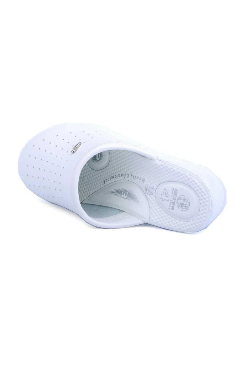 Ayak sağlığınızı ön planda tutan, ortopedik tasarımlı beyaz tıbbi terliklerimizle tanışın. Hemşireler, aşçılar ve uzun süre ayakta kalan herkes için idealdir.