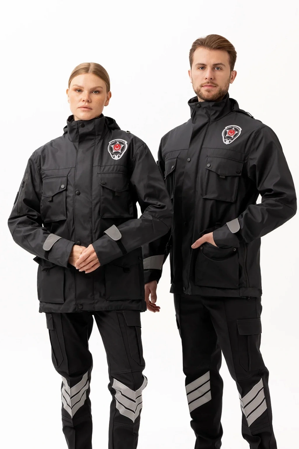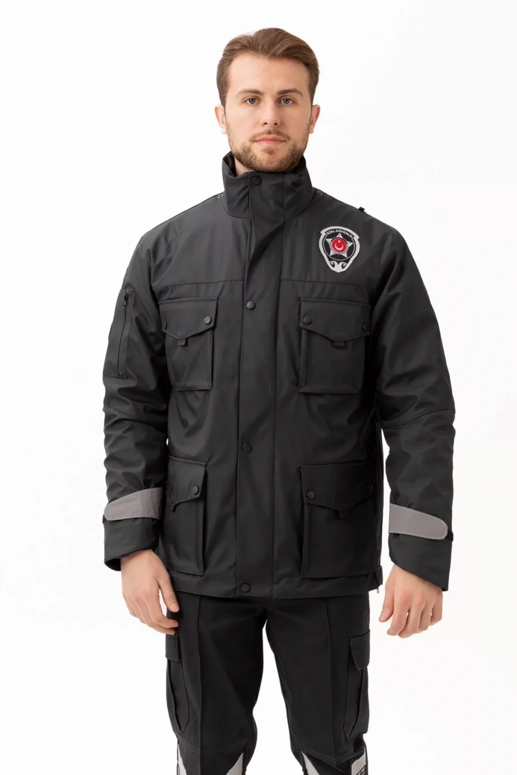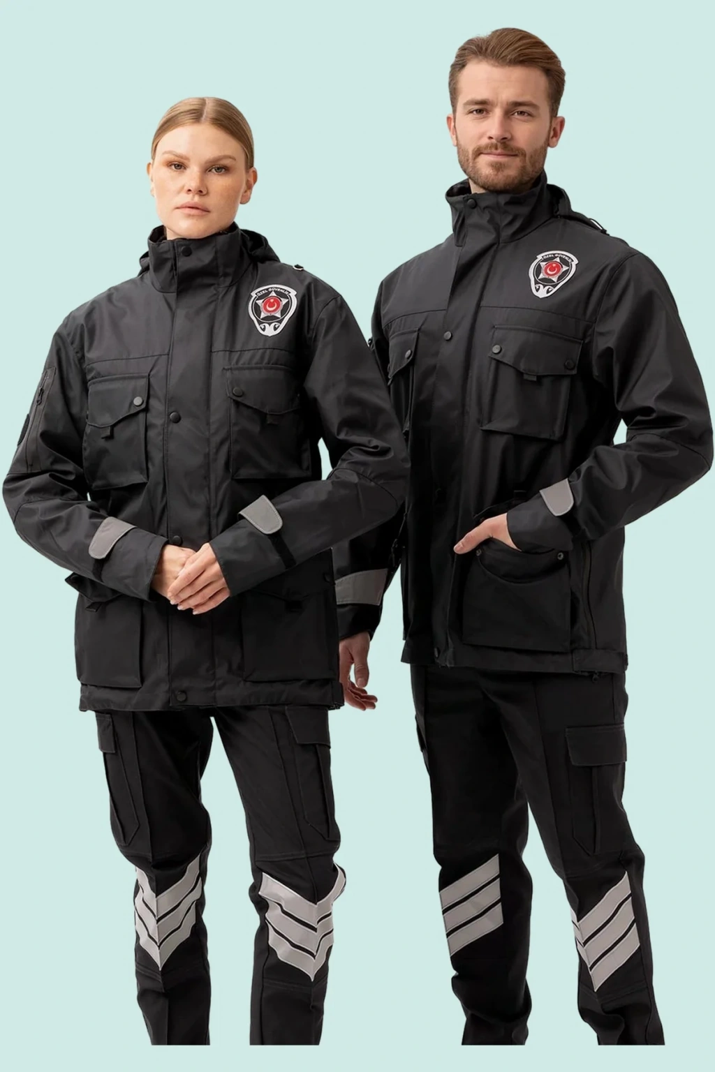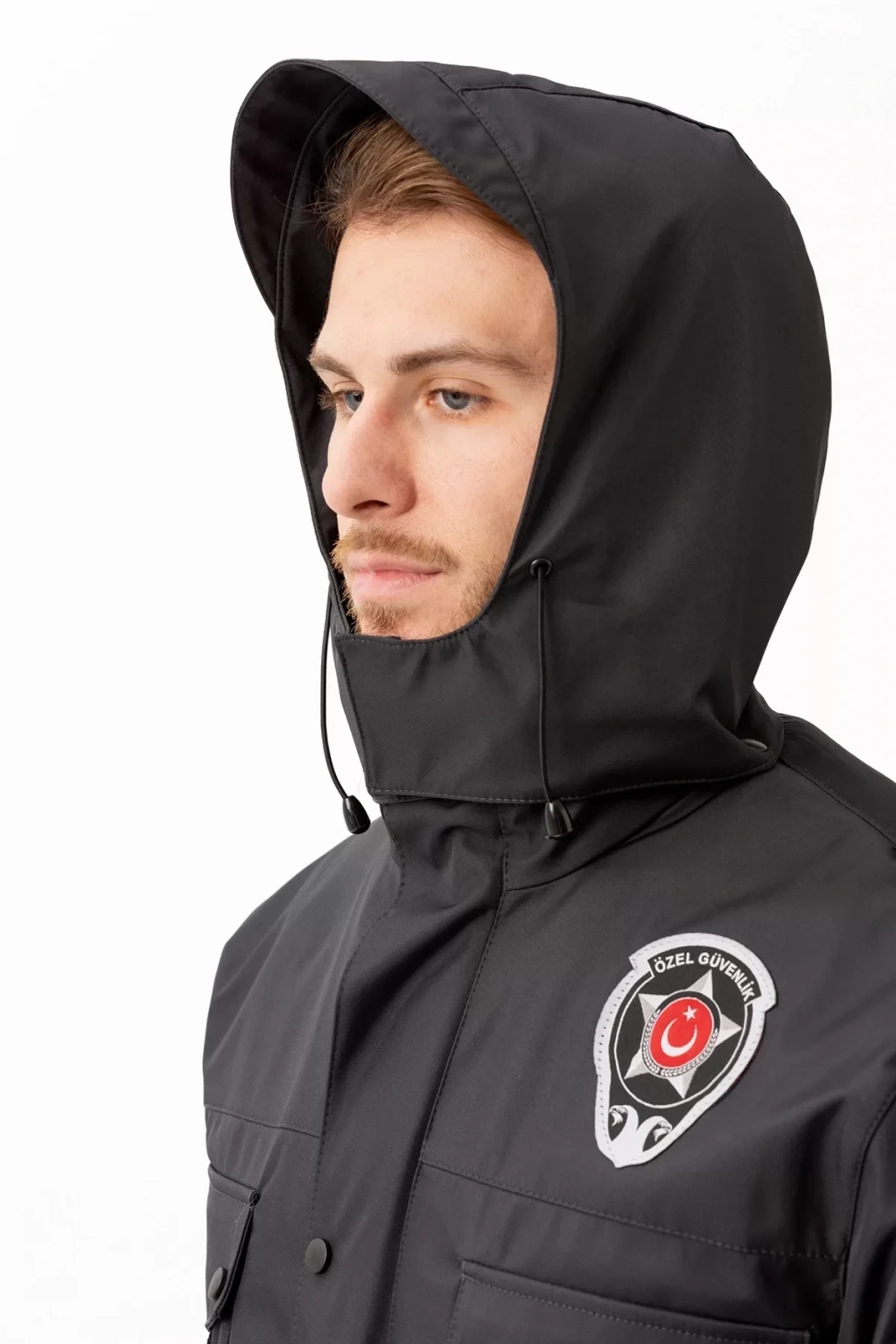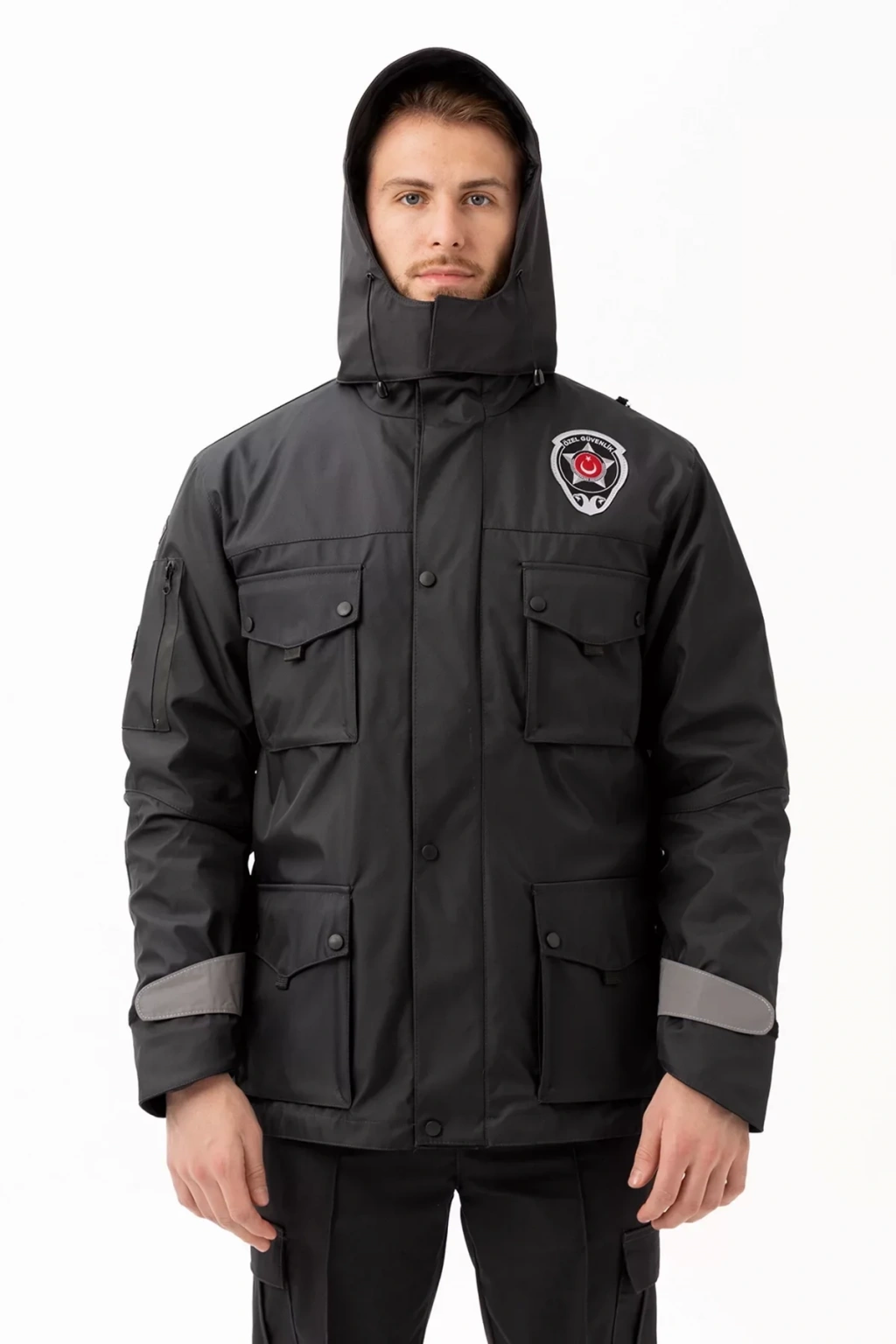 Zorlu kış koşullarında çalışan güvenlik personeline özel olarak tasarlanan, siyah renkli kışlık iş güvenliği kabanımız, maksimum koruma ve görünürlük sağlar.