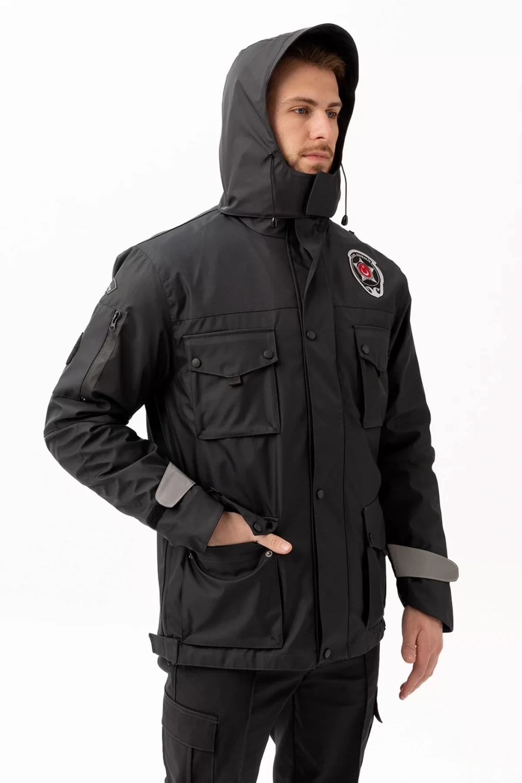 Üstün kaliteli, suya dayanıklı ve nefes alabilir 3 katmanlı laminasyonlu polyester kumaştan üretilen kaban, soğuktan ve yağmurdan etkili bir şekilde korur. Ergonomik tasarımıyla gün boyu konfor sunar.