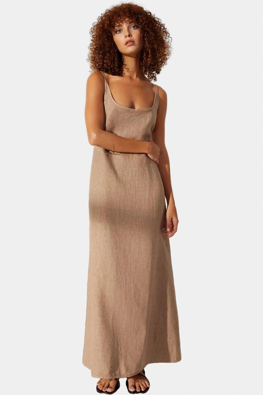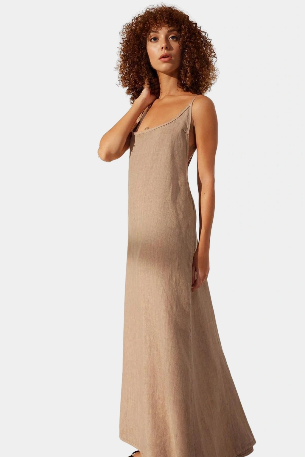 Yaz aylarının vazgeçilmezi olacak bu şık ve rahat maxi elbise, %100 keten kumaştan üretilmiştir. Nefes alan yapısıyla sıcak havalarda dahi serin kalmanızı sağlar. V yaka detayı ve sırttaki özel tasarım, elbiseye feminen ve modern bir hava katmaktadır. Şıklığı ve rahatlığı bir araya getiren bu elbise, günlük yaşamınızda ve özel günlerinizde özgüvenle kullanabileceğiniz bir parçadır. %100 keten kumaş, doğal yapısıyla gün boyu konfor sunar. Nefes alabilir ve hafif özelliği sayesinde sıcak havalarda serin kalmanıza yardımcı olur. Sırt detayı, elbiseye şık bir görünüm kazandırırken, V yaka detayı da feminen bir dokunuş katmaktadır. Astarsız tasarımı sayesinde yaz aylarında ekstra rahatlık sağlar. Dokuma kumaş yapısı ise, elbisenin formunu koruyarak şık bir görünüm sunmasını sağlar. Maxi boyu ile her vücut tipine uyum sağlayan elbise, farklı aksesuarlarla kombinleyerek tarzınızı yansıtabilirsiniz. Günlük kullanım için sandaletler veya espadrillerle, daha şık bir görünüm için ise topuklu ayakkabılarla kombinleyebilirsiniz. Elbisenin bakımı kolay olup, makinede yıkanabilir. Modelin ölçüleri ve beden bilgileri, ürünün tam olarak nasıl durduğuna dair daha net bir fikir vermektedir. - Kumaş Tipi: Dokuma - Materyal: Keten - Kalıp: Shift - Persona: Fashion Forward - Kol Tipi: Standart Kol - Desen: Düz - Yaka Tipi: V Yaka - Kol Boyu: Kolsuz - Astar Durumu: Astarsız - Boy: Maxi - Siluet: Basic - Ortam: Casual/Günlük - Dokuma Tipi: Rigid - Kemer/Kuşak Durumu: Kemersiz - Sürdürülebilirlik Detayı: Hayır - Materyal Bileşeni: 100% Keten - Sezon: Yaz - Menşei: TR - Modelin Ölçüleri: Boy: 175cm(59) Göğüs: 83cm(32in) Bel: 56cm(22in) Kalça: 87cm(34in) - Mankenin üzerindeki ürün S36 bedendir. - Model Ön Boyu: 129,0 cm