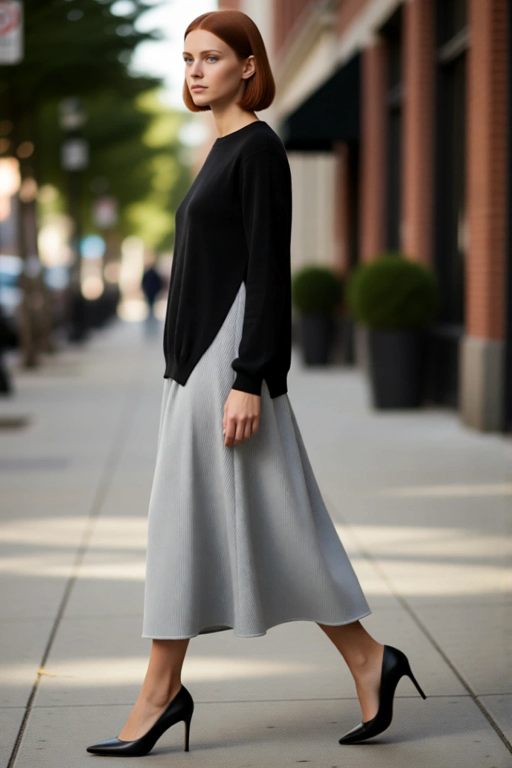 Shift siluetiyle her vücut tipine uyum sağlayan bu midi elbise, ofis ortamından günlük gezintilere kadar geniş bir kullanım yelpazesi sunar. Kış sezonunda kalın botlar ve kazaklar ile katmanlı bir stil oluşturulabilirken, sonbahar ve ilkbahar aylarında tek başına veya hafif bir ceketle tamamlanabilir. Şıklığı ve pratikliği bir arada arayan kadınlar için mükemmel bir tercihtir.