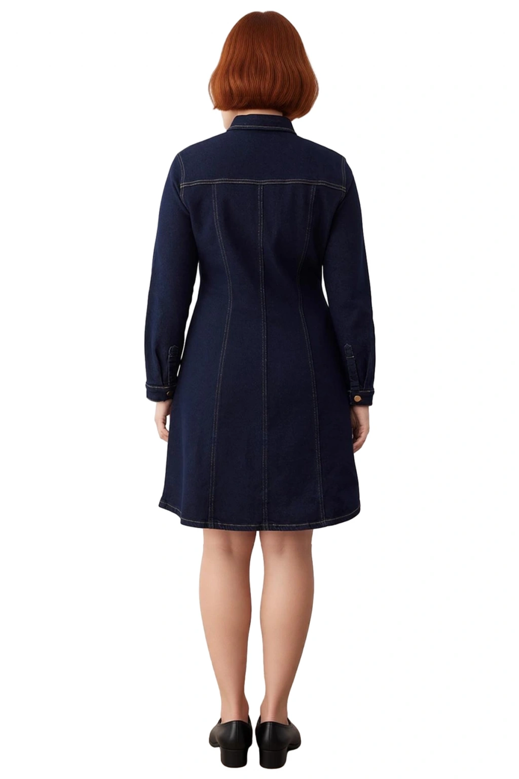 Bu şık denim elbise, A-line kesimi sayesinde farklı vücut tiplerine kolayca uyum sağlar ve büyük beden kadınların stil beklentilerini karşılar. Beyaz spor ayakkabılarla enerjik, şık botlarla sofistike bir görünüm yakalayabilirsiniz. Kışın kalın taytlar ve kabanlarla, baharda ise tek başına giyerek mevsim geçişlerinde kurtarıcınız olacak. Her ortamda kendinizi özel hissetmenizi sağlayacak.