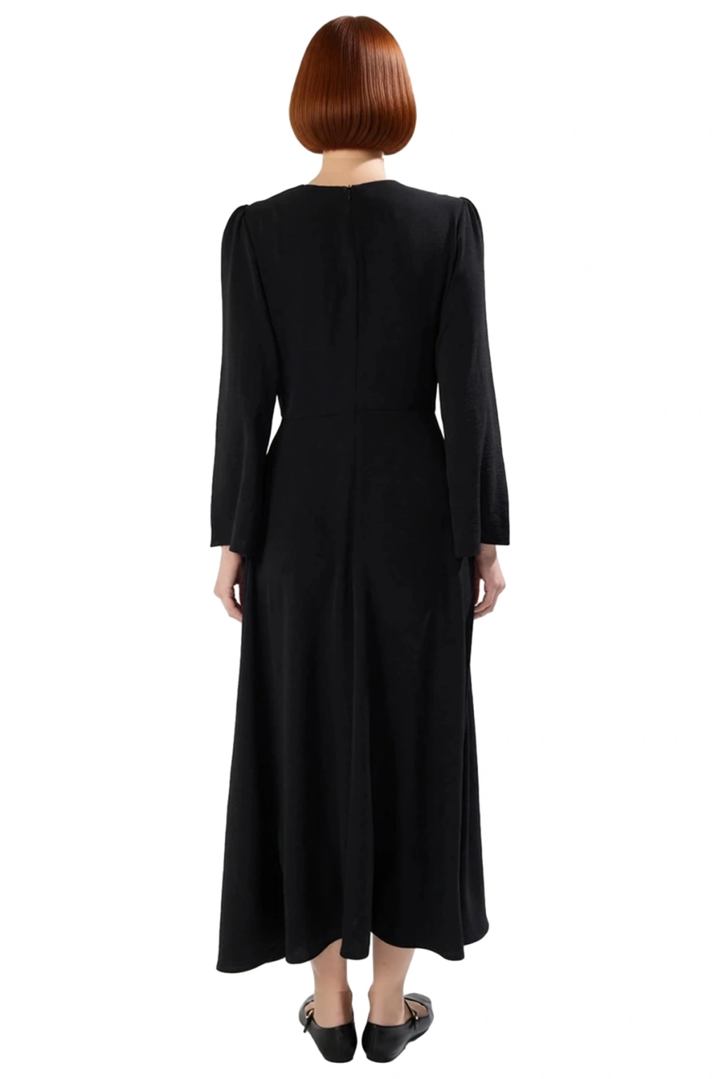 Her vücut tipine uyum sağlayan balık silueti, doğru aksesuarlarla tamamlandığında benzersiz bir stil yaratır. Topuklu ayakkabılar ve minimal takılarla özel davetlerde, babet veya sandaletlerle casual buluşmalarda giyilebilir. İlkbahar ve sonbahar mevsimlerinin yanı sıra, serin yaz akşamları için de ideal bir seçenek olan bu elbise, gardırobunuza çok yönlü bir zarafet katacak.