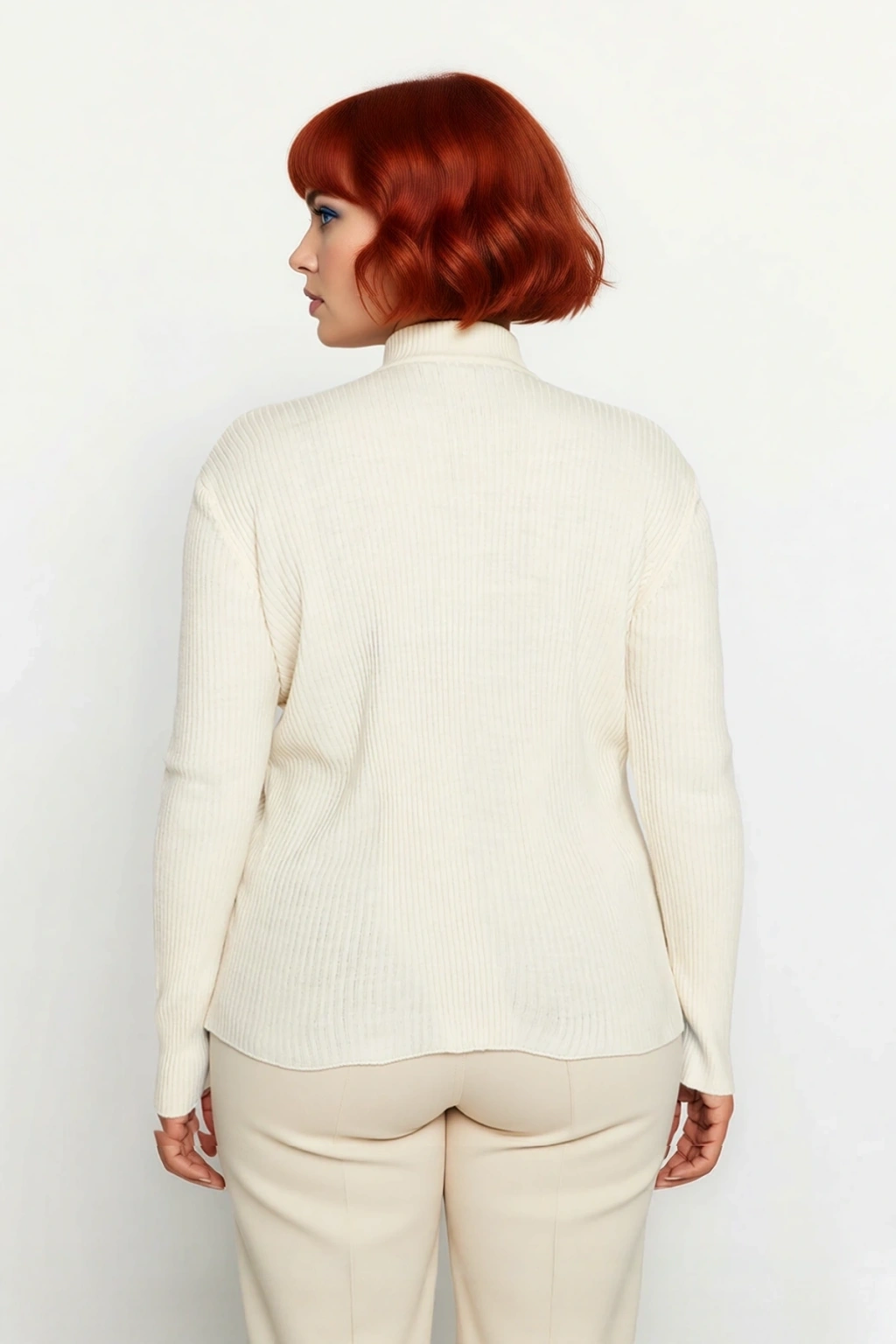 Ürün Özellikleri: Fitted kalıp, akrilik materyal, düz desen, dik yaka, standart kol, triko kumaş, bordo renk, baskısız tasarım, fitilli dokuma, ince kalınlık.