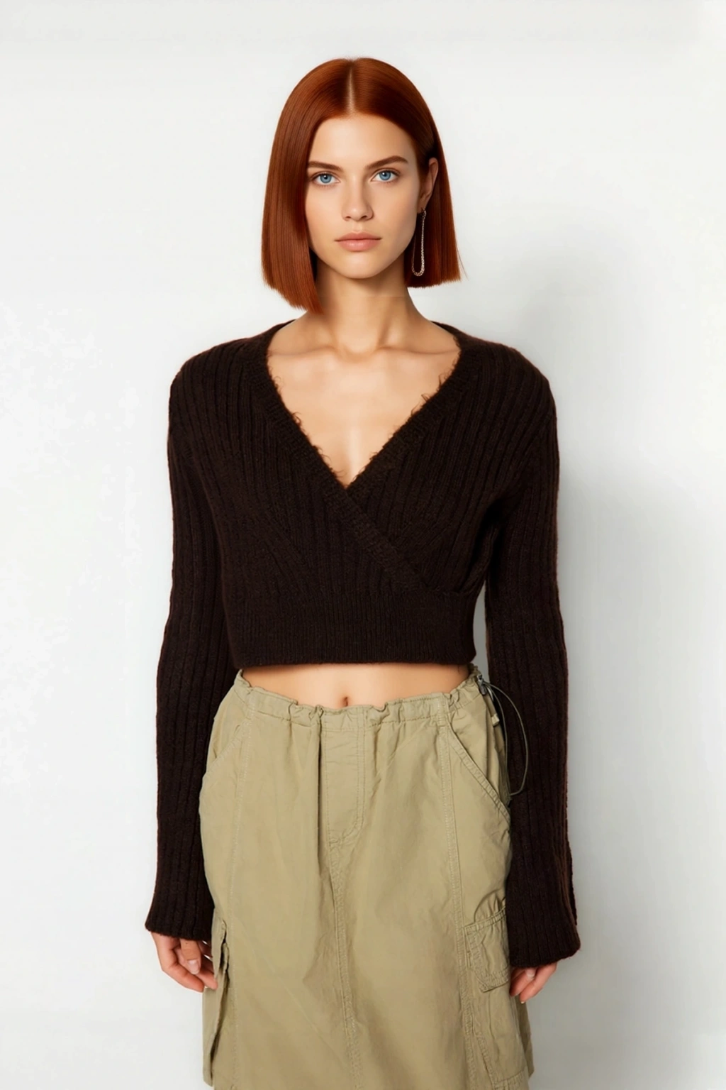Antrasit crop boy fitted kruvaze triko kazak, fitted kesimi sayesinde vücudunuzu kusursuzca sarar ve modern bir siluet oluşturur. Yüksek kaliteli akrilik ve polyester materyal karışımı, kış aylarında ihtiyacınız olan sıcaklığı ve gün boyu süren yumuşak dokunuş konforunu bir arada sunar. Fitilli dokusuyla göz alıcı bir görünüme sahip olan bu kazak, antrasit rengiyle her türlü kombinize zarif bir dokunuş katar. Casual/günlük kullanıma uygun basic yapısıyla şıklığı ve rahatlığı birleştirir.