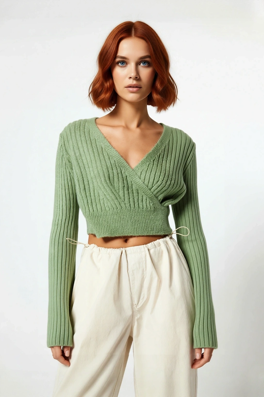 Kruvaze yaka tasarımı, kazağa özgün ve feminen bir hava katarken, standart kol yapısı hareket özgürlüğünüzü destekler. Orta kalınlıktaki triko kumaşı, serin havalarda ideal bir katmanlama parçası olmasını sağlar. Fitilli dokuma, hem görsel olarak zenginlik katar hem de kazağın dokusunu daha belirgin hale getirir. Cool & Comfort persona anlayışıyla tasarlanan bu ürün, kolay bakım özellikleri sayesinde (T41 yıkama talimatı) pratik bir kullanım sunarken, dayanıklı yapısıyla uzun yıllar gardırobunuzda yerini korur.