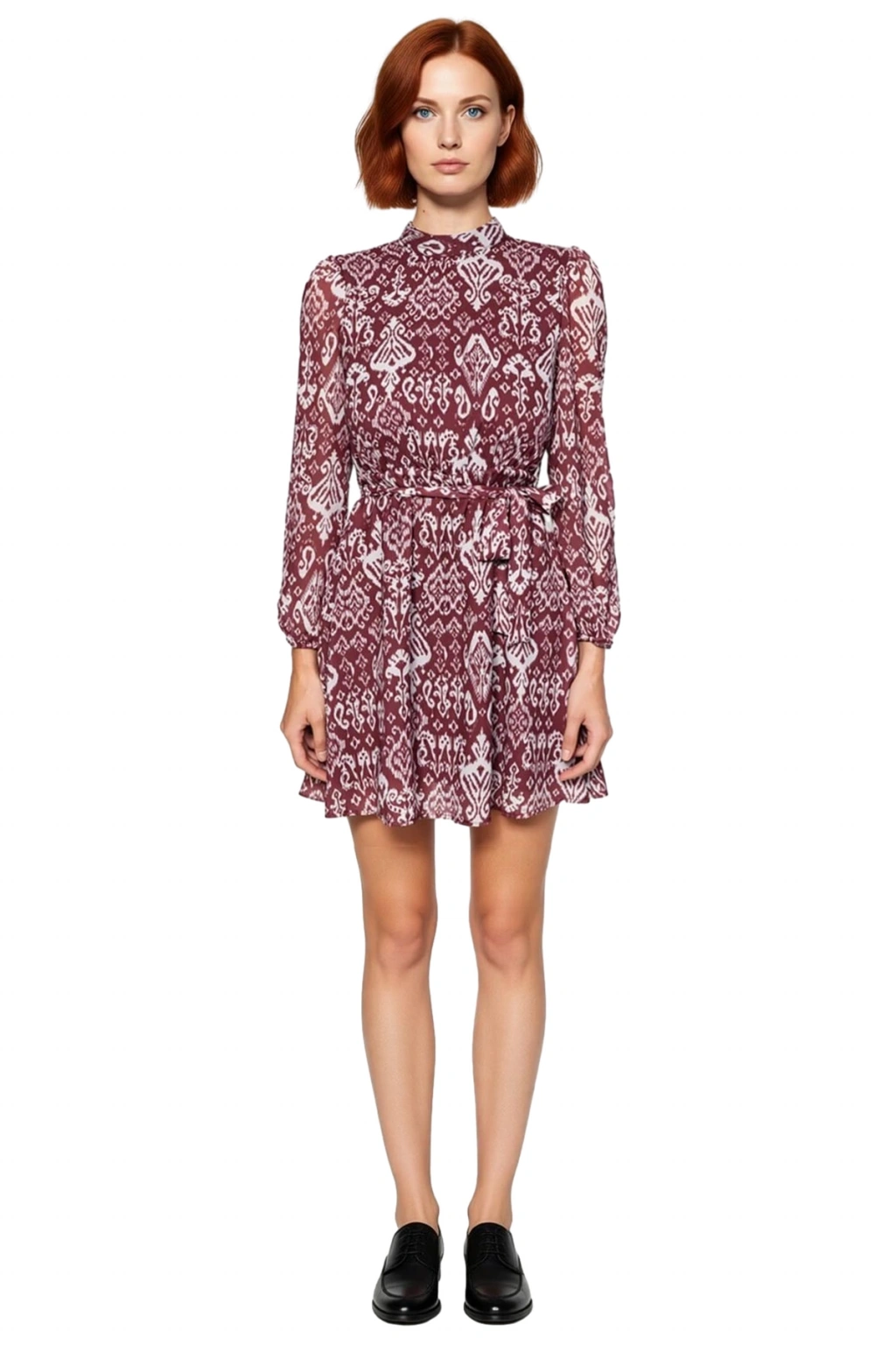 Zarif ve modern bir stil arayan Kadınlar için tasarlanan bu etnik desenli mini elbise, skater kalıbı ile genç ve dinamik bir görünüm sunar. Akışkan %100 polyester şifon dokuma materyali, hafifliği ve yumuşak dokusuyla dört mevsim konfor vadediyor. Canlı çok renkli etnik deseni (bordo ve krem tonları) ile dikkat çekici bir estetik sunarken, zarif dik yaka detayı klasik şıklığı modern bir yaklaşımla harmanlar. Kuşaklı beli sayesinde feminen hatlarınızı vurgularken, astarlı yapısı giyim rahatlığı ve güveni sağlar. Bu elbise, enerjik tasarımı ve konforlu yapısıyla gardırobunuzun favori parçalarından biri olmaya aday.