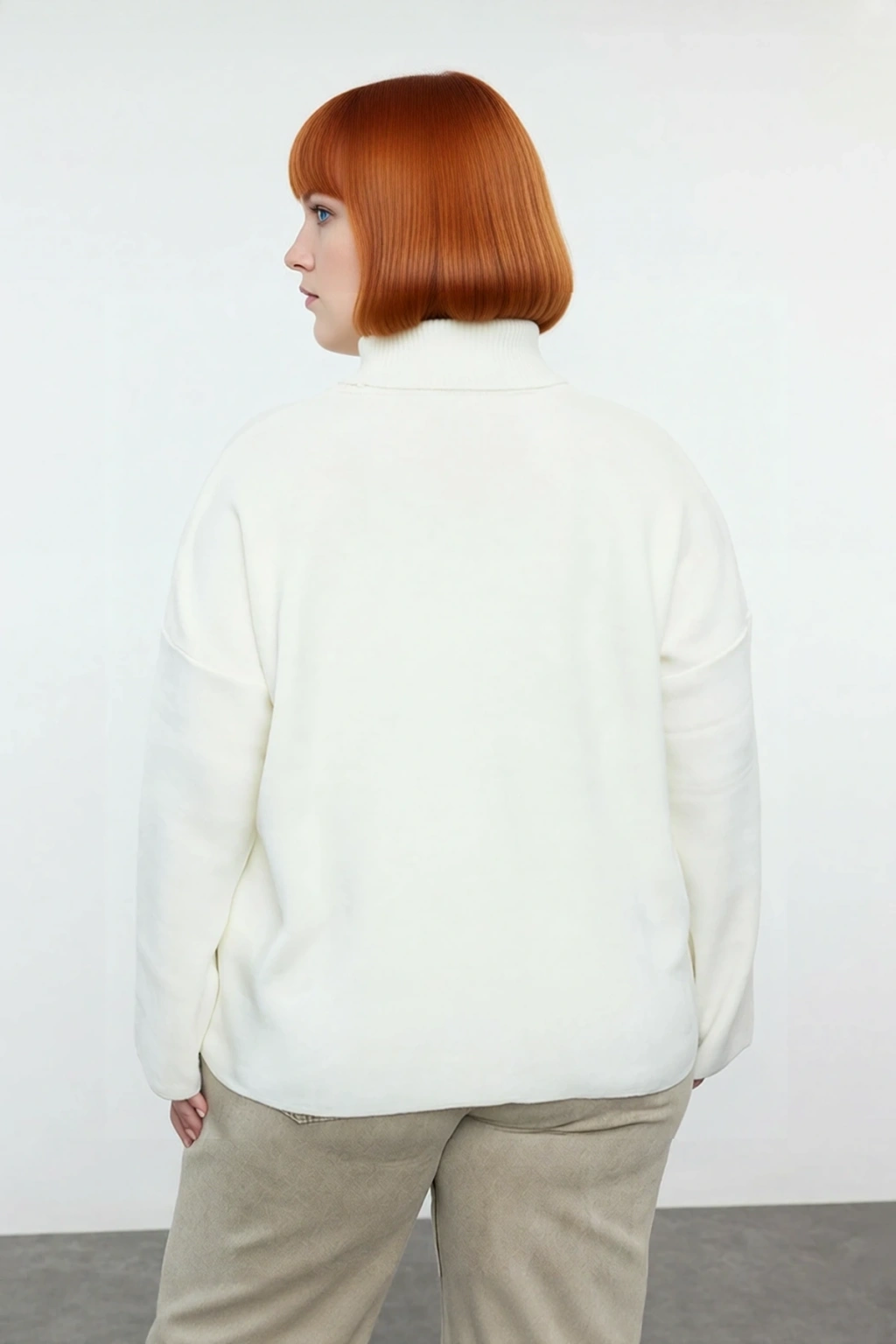 Ürün Özellikleri: Relaxed kalıp, %100 akrilik materyal, düz desen, balıkçı yaka, düşük kol, triko kumaş, ekru renk, cepsiz tasarım.