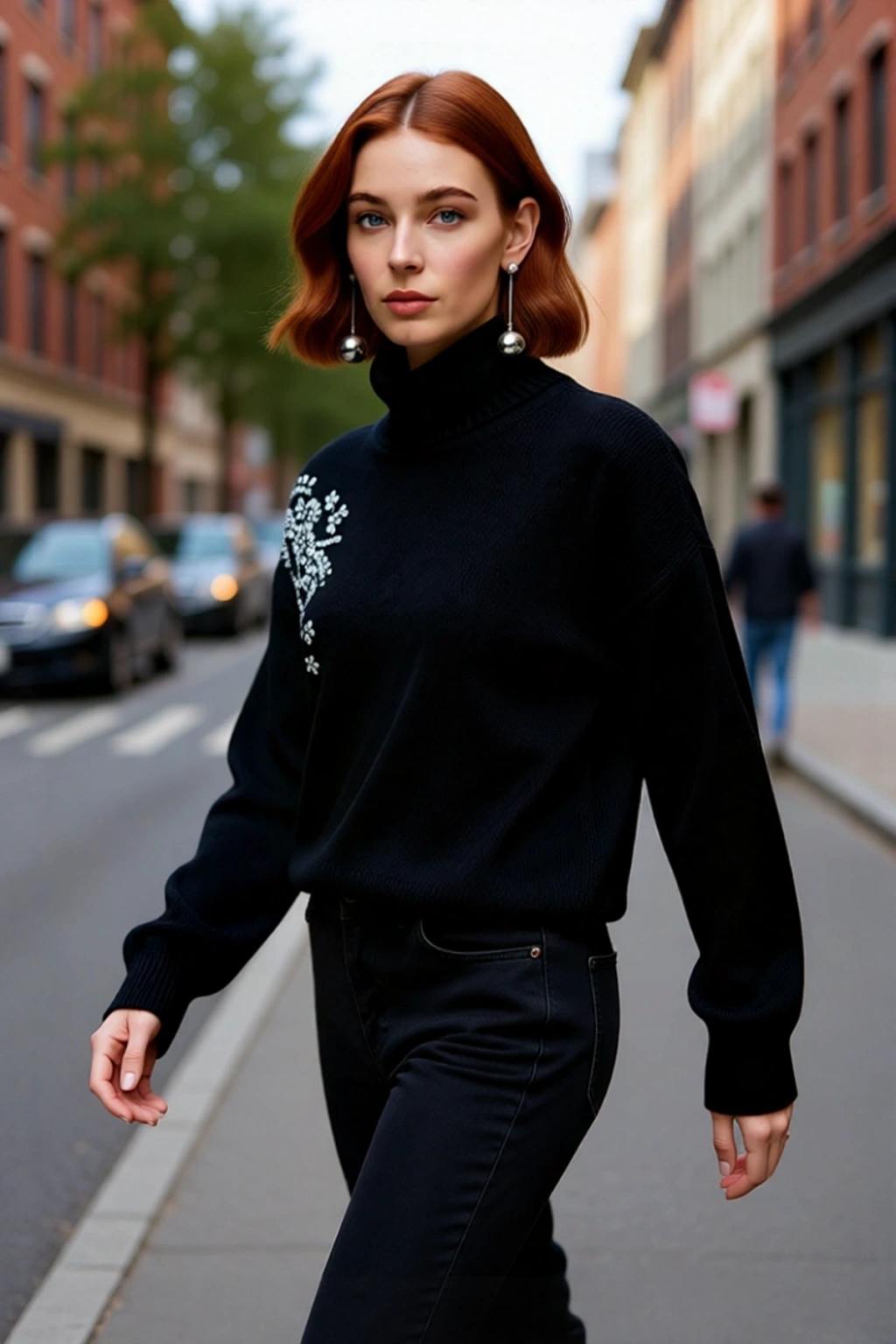Bu çok yönlü kazak, gündüz ve gece kullanıma uygun olup, çeşitli kombinasyonlarla kolayca adapte edilebilir. Skinny jeanler, taytlar veya şık kumaş pantolonlarla birleştirilerek farklı tarzlar yaratılabilir. Kış, sonbahar ve ilkbahar mevsimlerinde hem günlük giyim hem de özel anlar için idealdir. Her ortamda kendinizi özel hissetmenizi sağlayacak, gardırobunuzun zamansız parçalarından biri olacaktır.