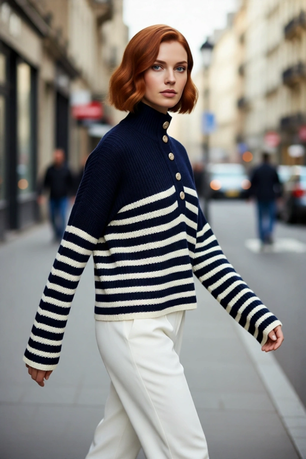 Kadınlar için tasarlanan bu göz alıcı oversize triko kazak, modern çizgileri ve rahat kesimiyle dikkat çeker. %100 akrilik materyalden üretilen bu parça, cildinize narin bir dokunuş sunarken, kışın en soğuk günlerinde bile sizi sıcak tutma garantisi verir. Ekru rengi üzerinde yer alan şık çizgili deseni, sade ama etkileyici bir estetik yaratır. Baskısız düz tasarımı, kolay kombinlenebilir yapısıyla "Cool & Comfort" ruhunu yansıtan kadınların favorisi olacak. Hem şık hem de fonksiyonel bu kazak, günlük giyimde fark yaratmak isteyenler için ideal bir seçenektir.