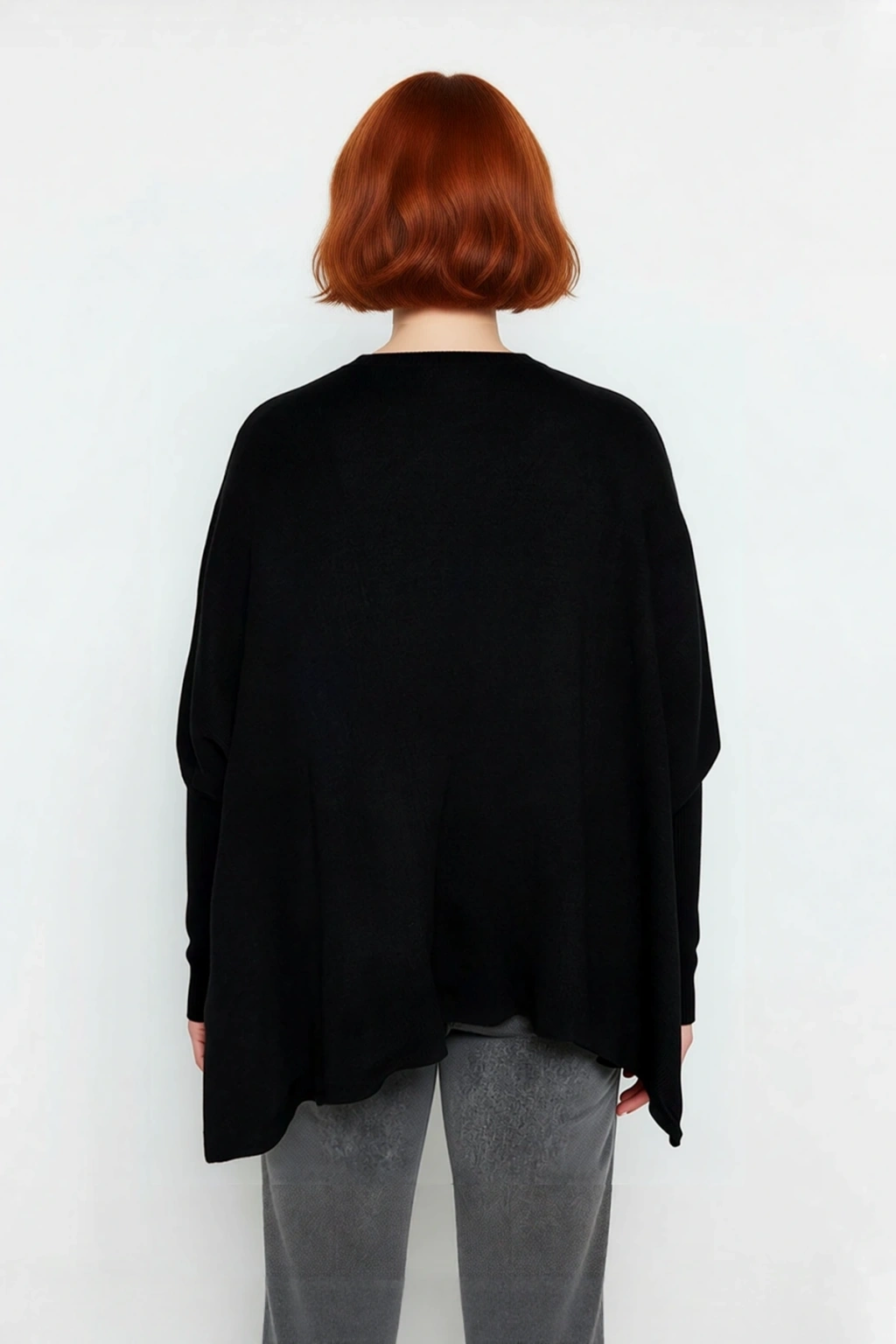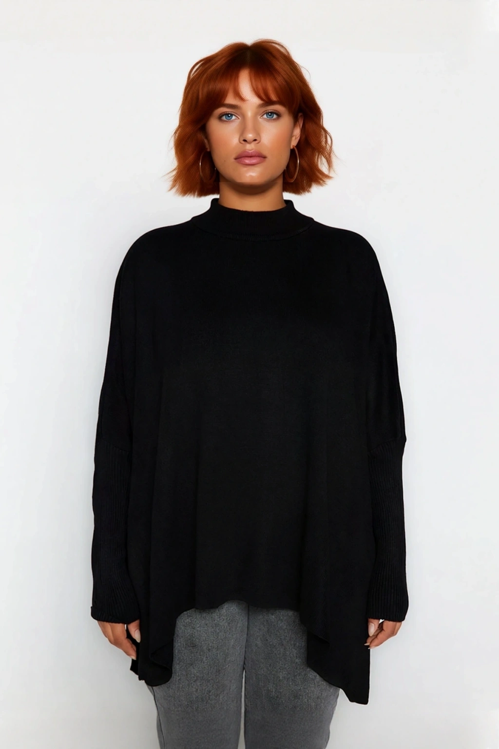 Ürün Özellikleri: Relaxed kalıp, akrilik materyal, düz desen, dik yaka, standart kol, triko kumaş, siyah renk.