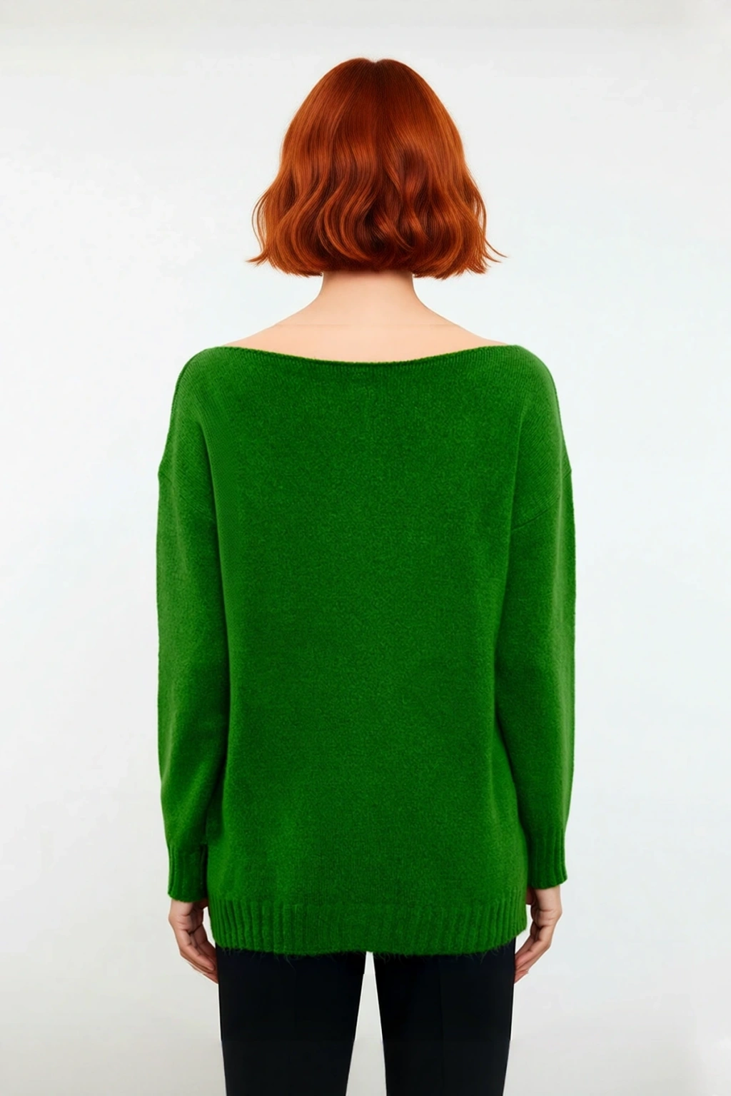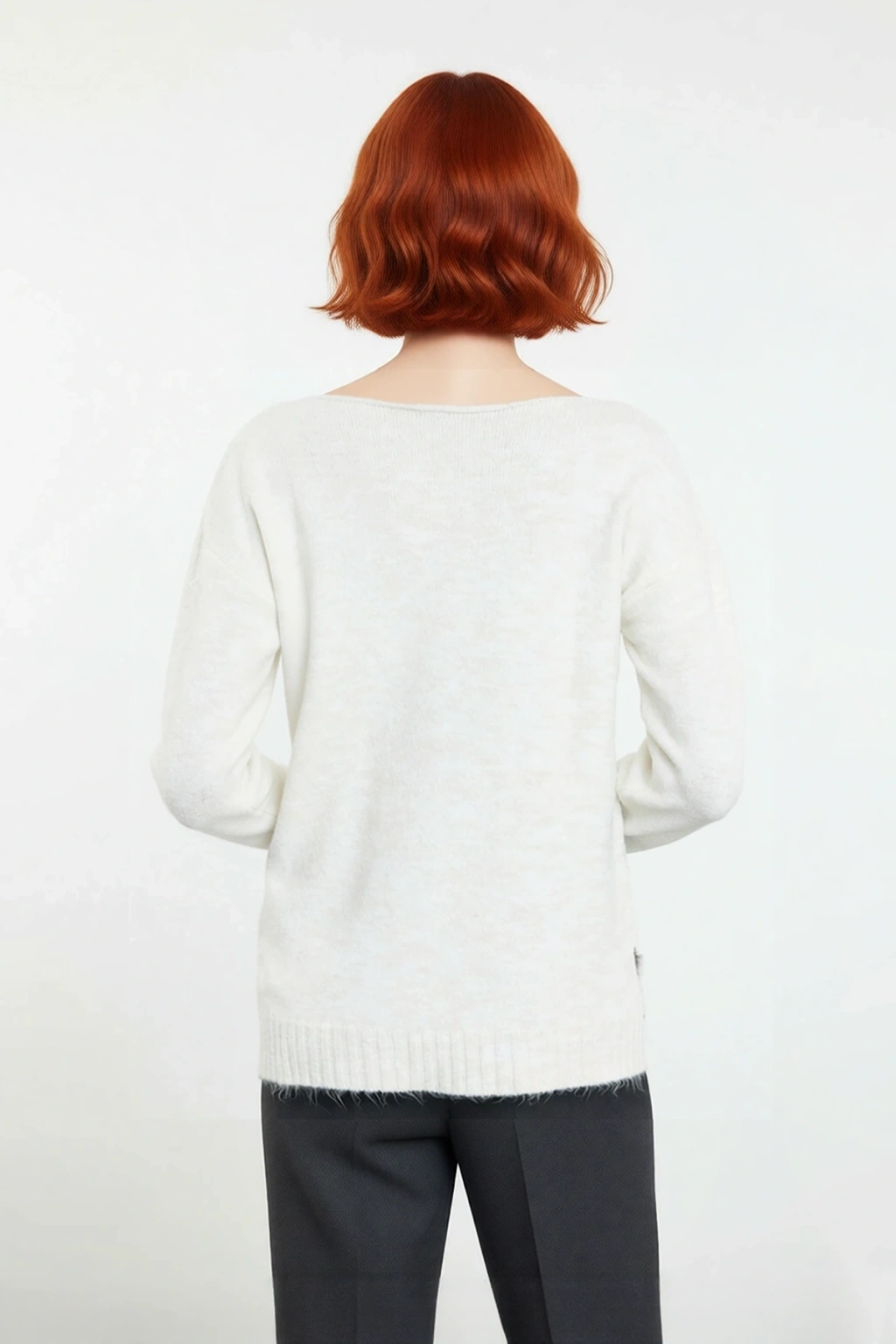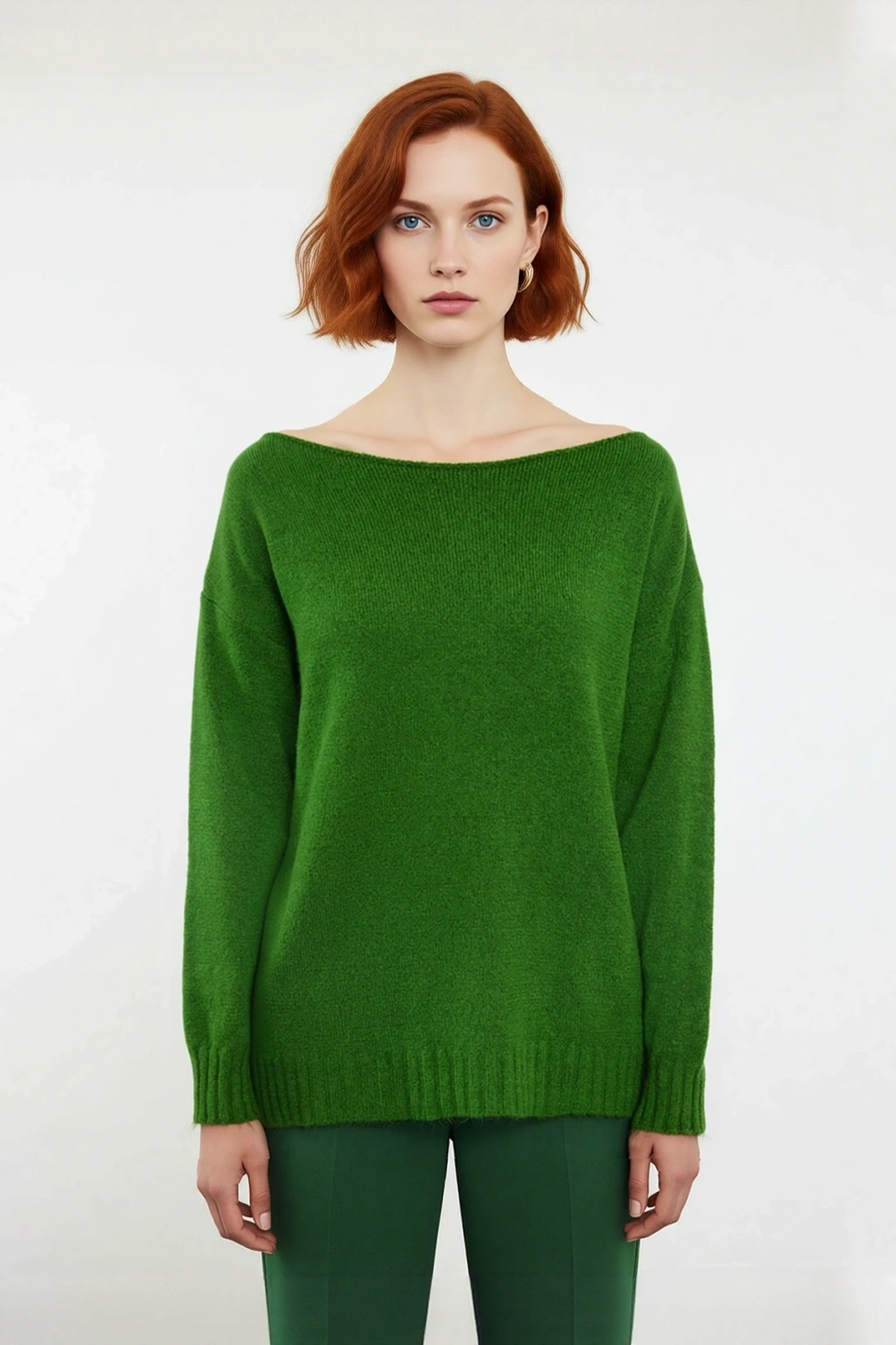 Geniş ve zarif kayık yaka detayı, boyun ve omuz çizgisini nazikçe vurgulayarak feminen bir hava katar ve rahat bir kullanım imkanı sağlar. Standart kol tipi ve uzun kol boyu, ilkbahar ve sonbahar serinliklerinde bile ideal bir sıcaklık ve rahatlık sağlar. İnce triko kumaş dokusu, hava akışına izin vererek cildinize nefes aldırır ve gün boyu taze hissetmenize yardımcı olur. Bu özel dokuma, kazak giyiminde sıkça karşılaşılan kalınlık hissini ortadan kaldırarak hafif bir kullanım sunar. Tek plaka dokuma tekniği ile üretilmiş olması, ürünün formunu ve dayanıklılığını artırır. Bakım talimatlarına uygun yıkandığında uzun ömürlü kullanım garantisi verir.