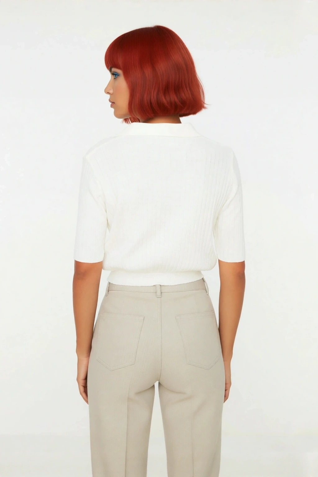 Fitilli dokuma tipine sahip düz deseni, bluzun minimalist çizgisine modern bir detay katar. Klasik polo yaka tasarımı, sportif bir dokunuşla şıklığı birleştirirken, kısa standart kol boyu özellikle sıcak geçiş mevsimlerinde serin ve rahat kalmanızı sağlar. Cepsiz yapısı, ürünün sade ve akıcı siluetini korur. Bu crop bluzun esnek triko kumaşı, hareket özgürlüğünüzü kısıtlamaz ve günün her anında rahatlık sunar. Yüksek kaliteli akrilik iplikler sayesinde, yıkama talimatlarına uyulduğunda uzun süreli kullanım ve ilk günkü formunu koruma garantisi verir.
