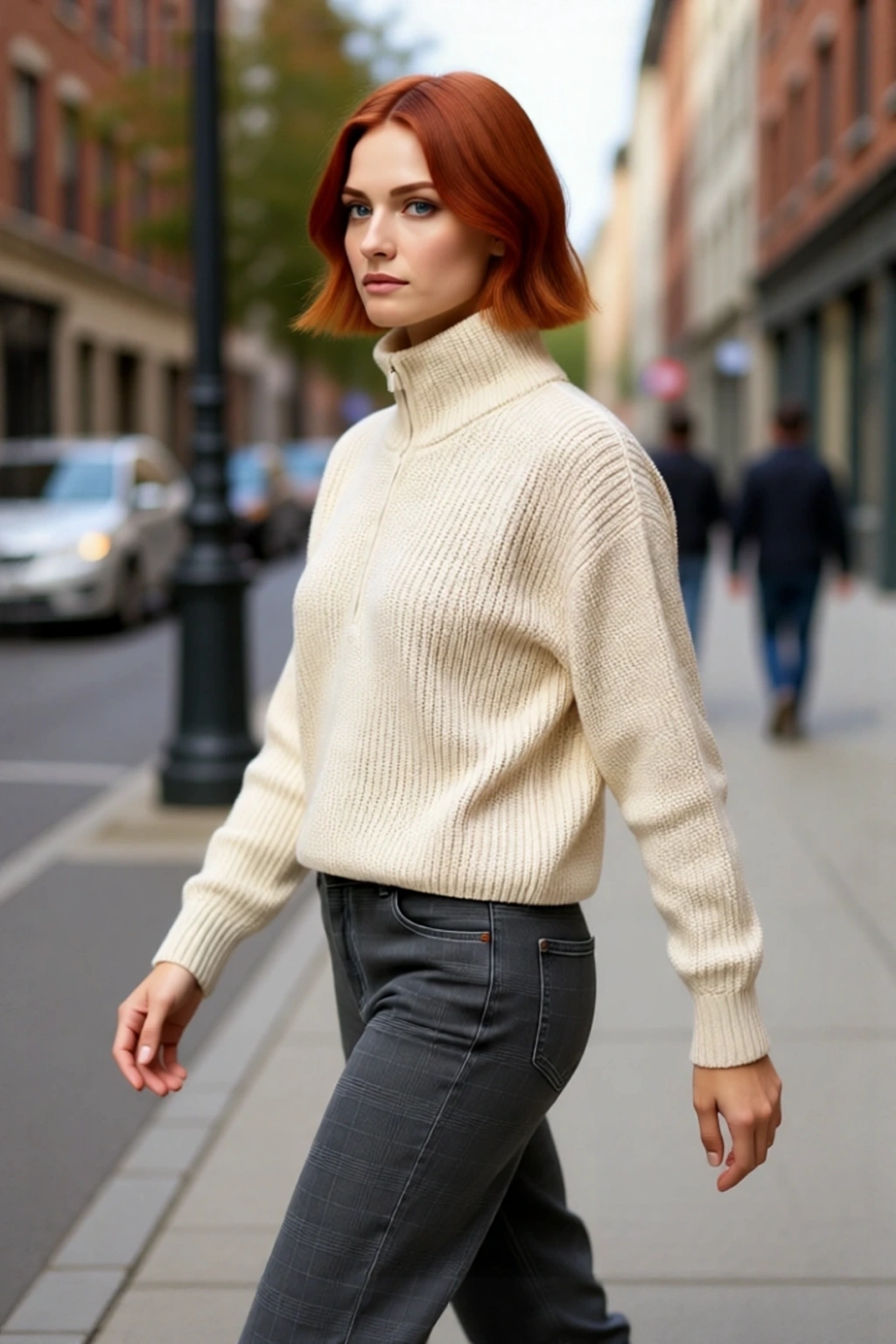 Dik yaka ve fermuar detayı, hem boyun bölgenizi soğuktan korur hem de kazak modeline dinamik bir hava katarak farklı stiller yaratmanıza olanak tanır. Düşük kol ve uzun kol boyu, gün boyu hareket özgürlüğü sunarken modern bir siluet oluşturur. Selanik dokuma triko kumaşının kalitesi, ürünün dayanıklılığını artırır ve uzun süreli kullanım imkanı sağlar. Makinede yıkanabilir özelliği ile bakım kolaylığı sunan bu kazak, pratikliğiyle de öne çıkar.