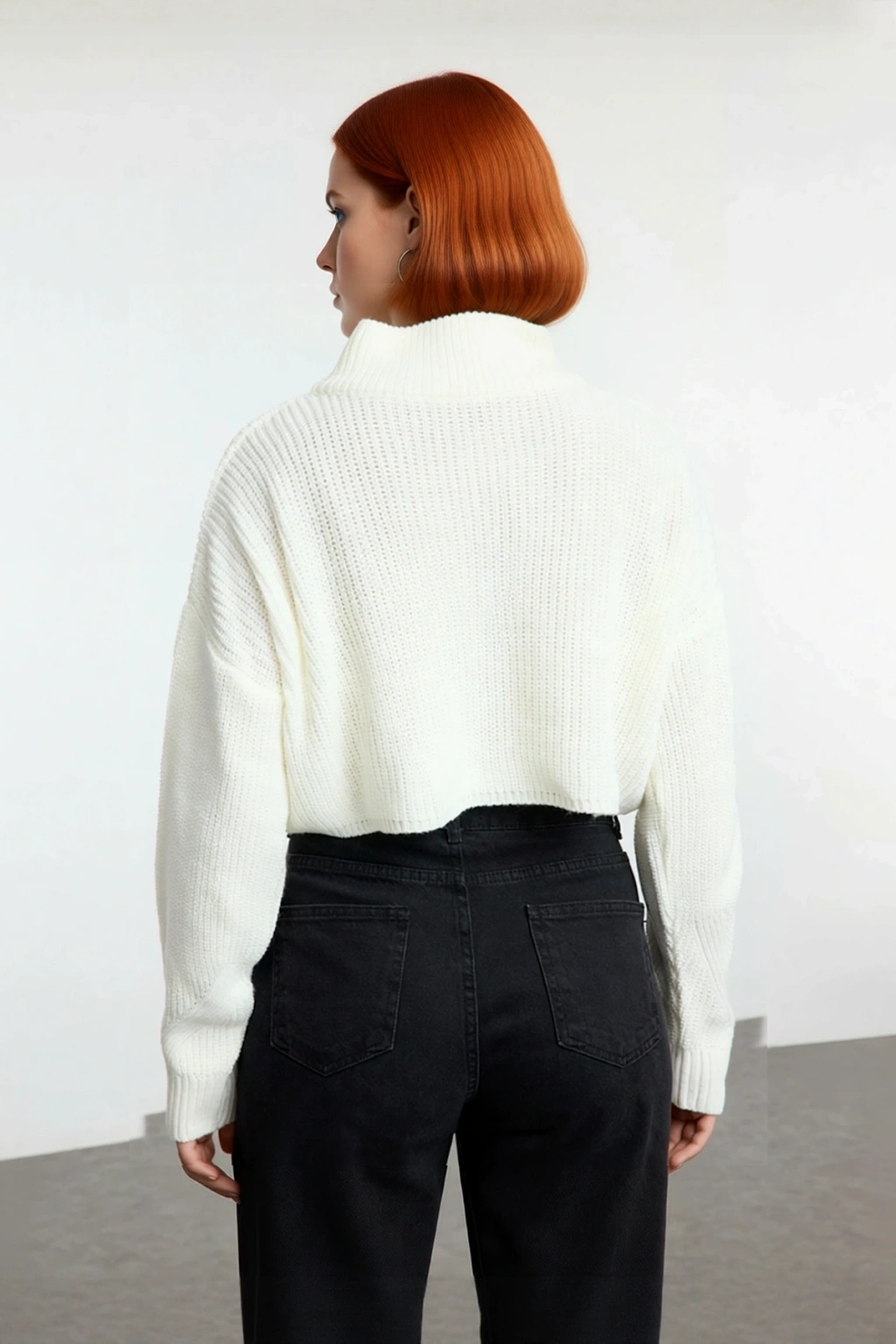 Kadın Basic Oversize Düşük Uzun Kollu Crop Fermuarlı Dik Yaka Triko Kazak, soğuk havalarda bile şıklığından ödün vermek istemeyenler için tasarlandı. Oversize kesimi ile modern ve rahat bir duruş sergilerken, %100 akrilik materyali sayesinde yumuşacık bir dokunuş ve üstün ısı yalıtımı sunar. Düz deseni ile minimalist bir şıklık yakalayan bu kazak, gri rengiyle gardırobunuzdaki her parçayla uyum içinde. Crop boyu, enerjik ve genç bir stil oluşturmanıza yardımcı olurken, aynı zamanda 'Cool & Comfort' personasını yansıtır.
