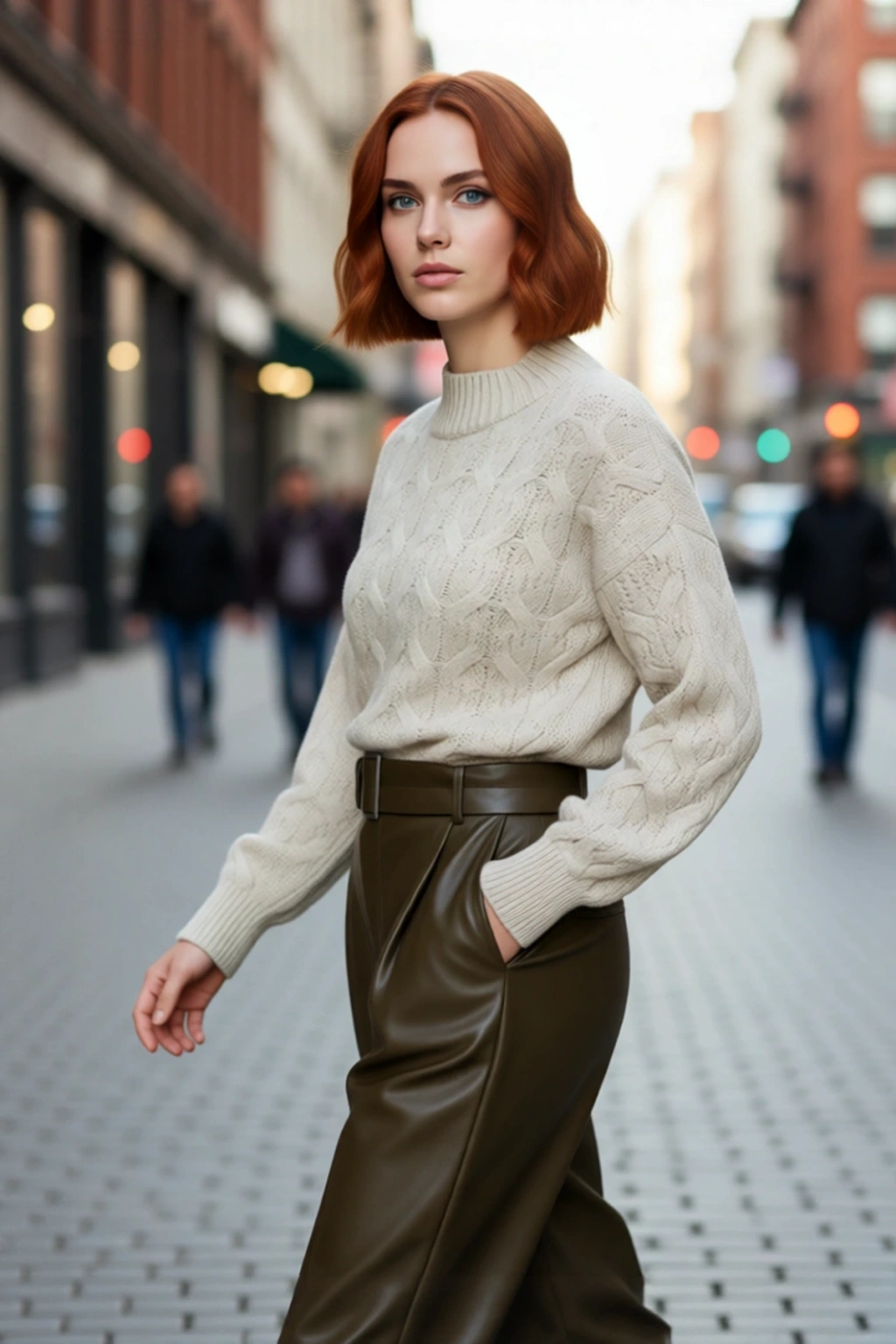 Dik yaka tasarımı, soğuk rüzgarlara karşı etkili bir koruma sağlarken, şık duruşuyla da dikkat çeker. Balon kol tipi ve uzun kol boyu, modern bir estetik sunar ve hareketlerinizi kısıtlamaz. Triko kumaşının çift plaka dokuma tekniği, ürünün dayanıklılığını artırarak uzun yıllar formunu korumasını sağlar. Bu kazak, casual ve günlük kullanım için biçilmiş kaftan olup, cool ve konforlu bir tarzı benimseyenler için idealdir. T41 yıkama talimatı sayesinde, zahmetsizce temizlenerek her zaman yeni gibi kalır.