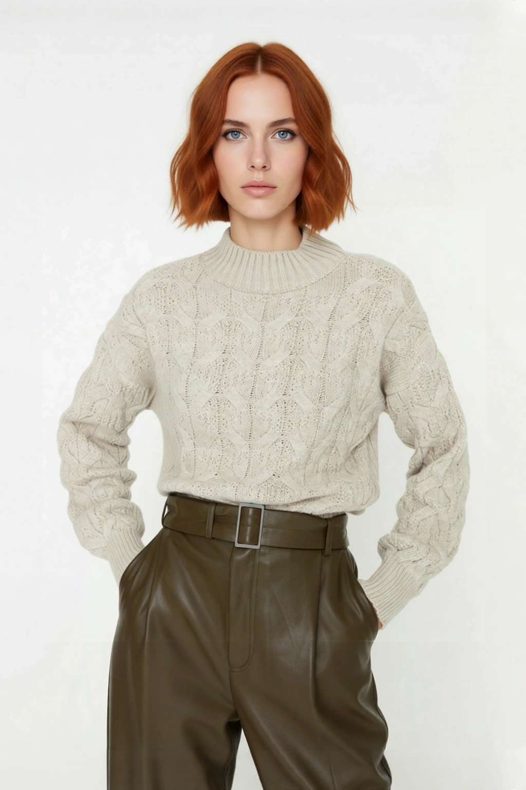Bu Kadın Basic Oversize Saç Örgü Dik Yaka Crop Triko Kazak ile soğuk havalarda bile modern ve dinamik bir stil yakalayın. Yüksek kaliteli akrilik materyali sayesinde son derece sıcak tutan bu kalın kazak, oversize kalıbıyla gün boyu maksimum konfor ve rahatlık sunar. Saç örgü deseni, kazaka özgün bir karakter katarken, gri rengi zamansız bir şıklık ve geniş kombinasyon seçenekleri sağlar. Crop boyu ve basic siluetiyle, genç ve enerjik bir görünüm arayan kadınlar için ideal bir tercihtir.