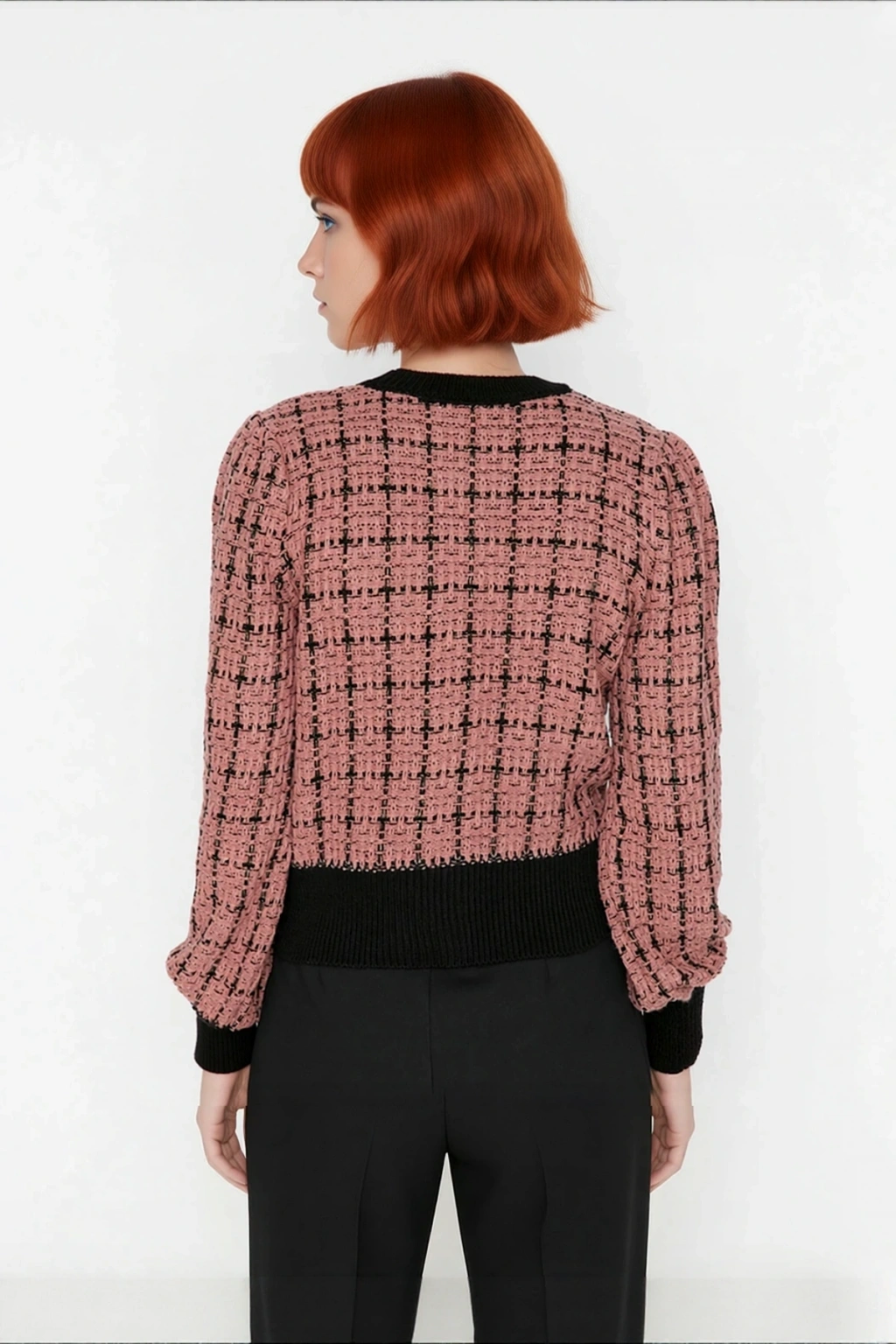 Ürün Özellikleri: Regular kalıp, akrilik - polyester materyal, dokulu desen, bisiklet yaka, uzun kol, triko kumaş, pembe renk, cepsiz tasarım.