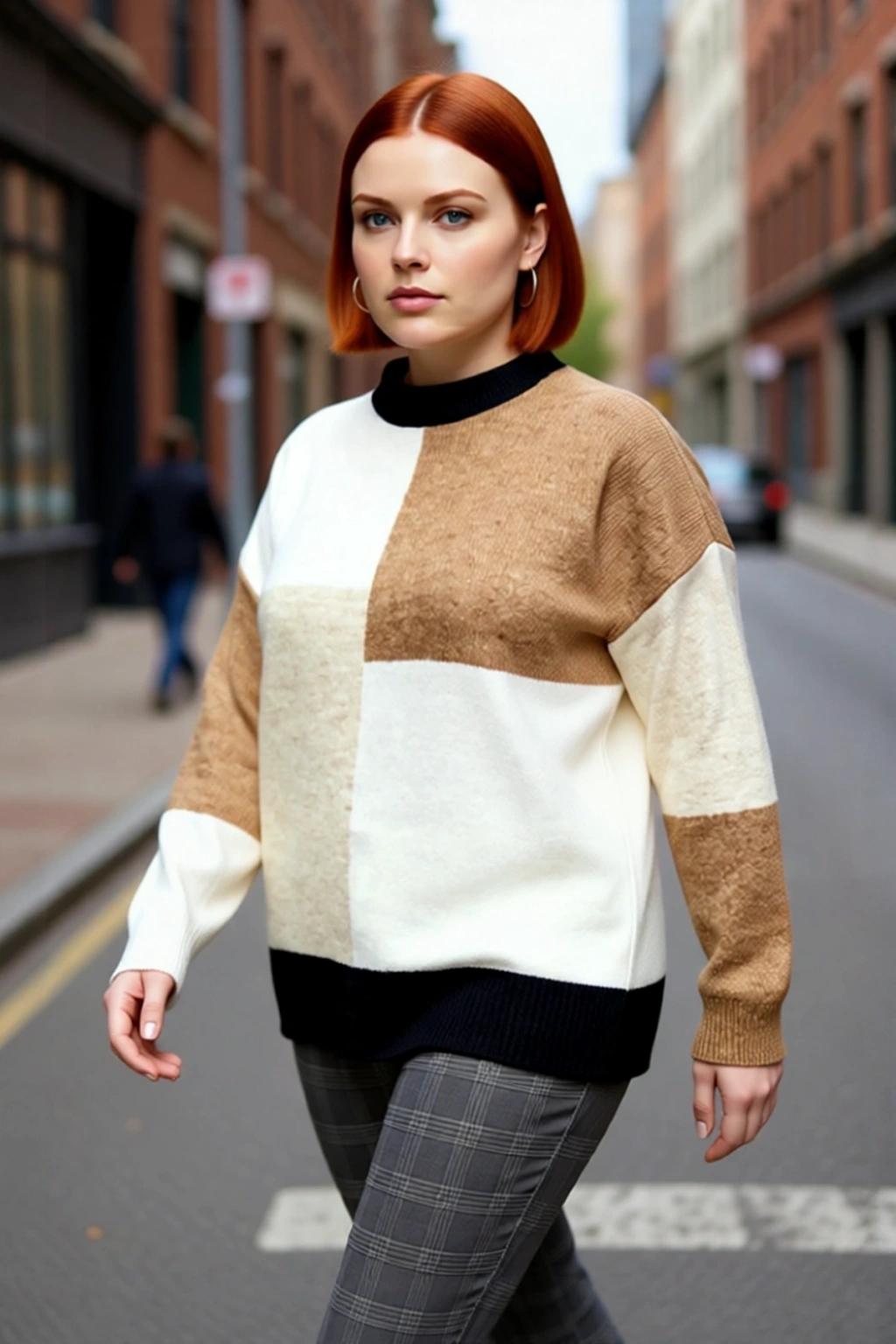 Ürün Özellikleri: Relaxed kalıp, 100% akrilik materyal, renk bloklu desen, bisiklet yaka, düşük kol, triko kumaş, çok renkli, baskısız tasarım.