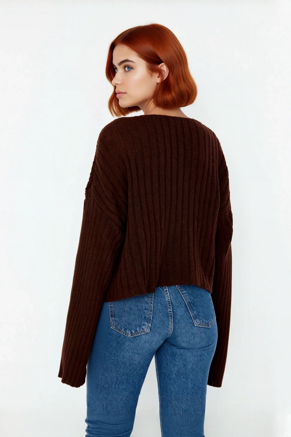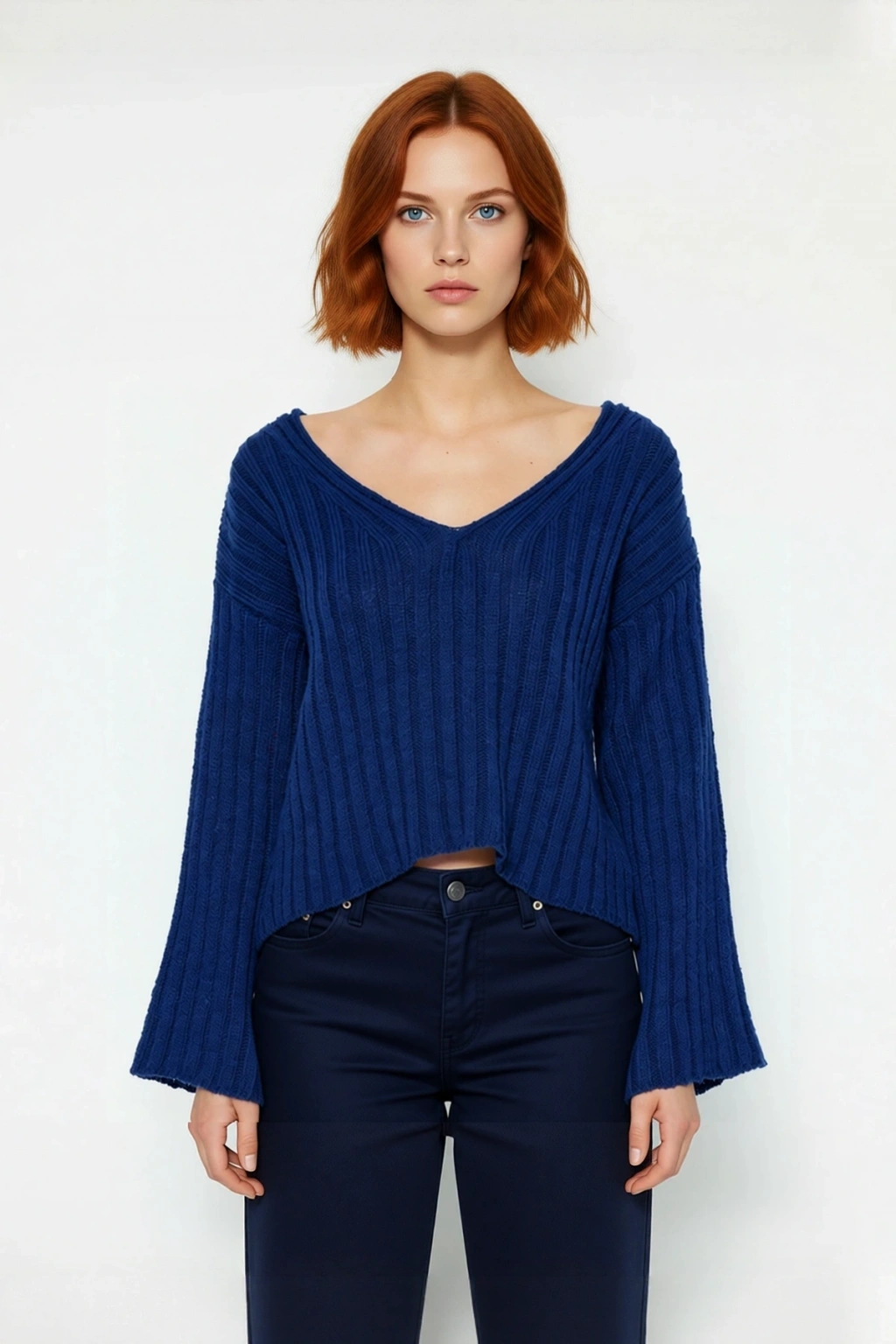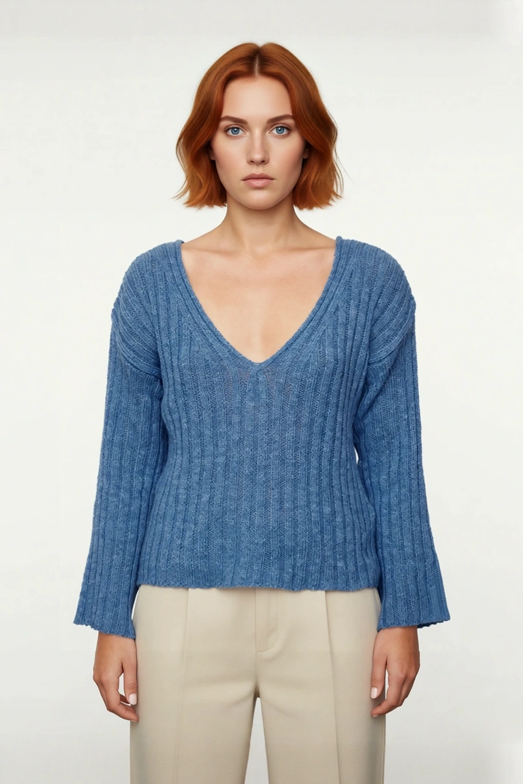 V yaka kesimi, feminen bir dokunuş katarken, standart uzun kol yapısı gün içindeki tüm hareketlerinizde size özgürlük sunar. Fitilli dokuma tipi, kazağa zarif bir doku ve görsel ilgi eklerken, triko kumaşın nefes alabilen yapısı sayesinde gün boyu ferah ve konforlu hissedersiniz. Orta kalınlıktaki yapısı, mevsim geçişlerinde ve kışın katmanlı giyimde ideal bir seçenek sunar. Cepsiz tasarımıyla temiz ve pürüzsüz bir görünüm sağlayan bu kazak, dayanıklı yapısıyla uzun yıllar boyunca gardırobunuzda yerini koruyacaktır.
