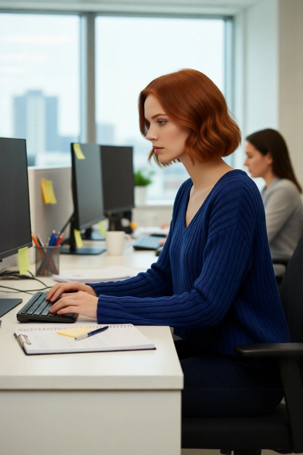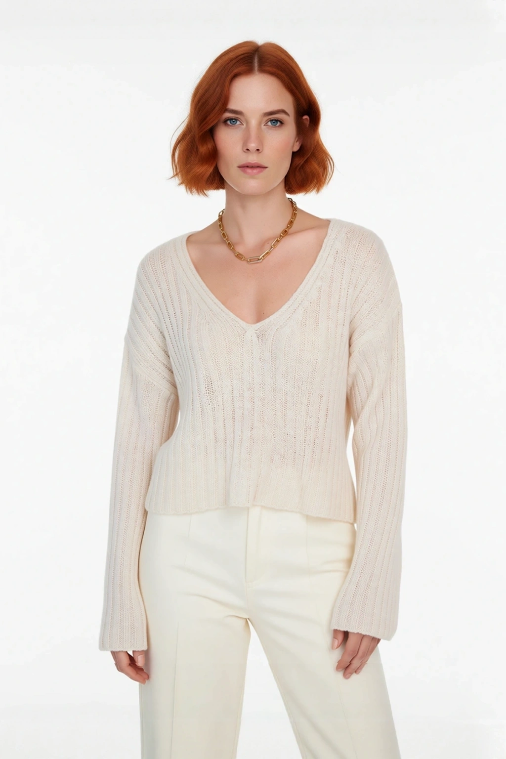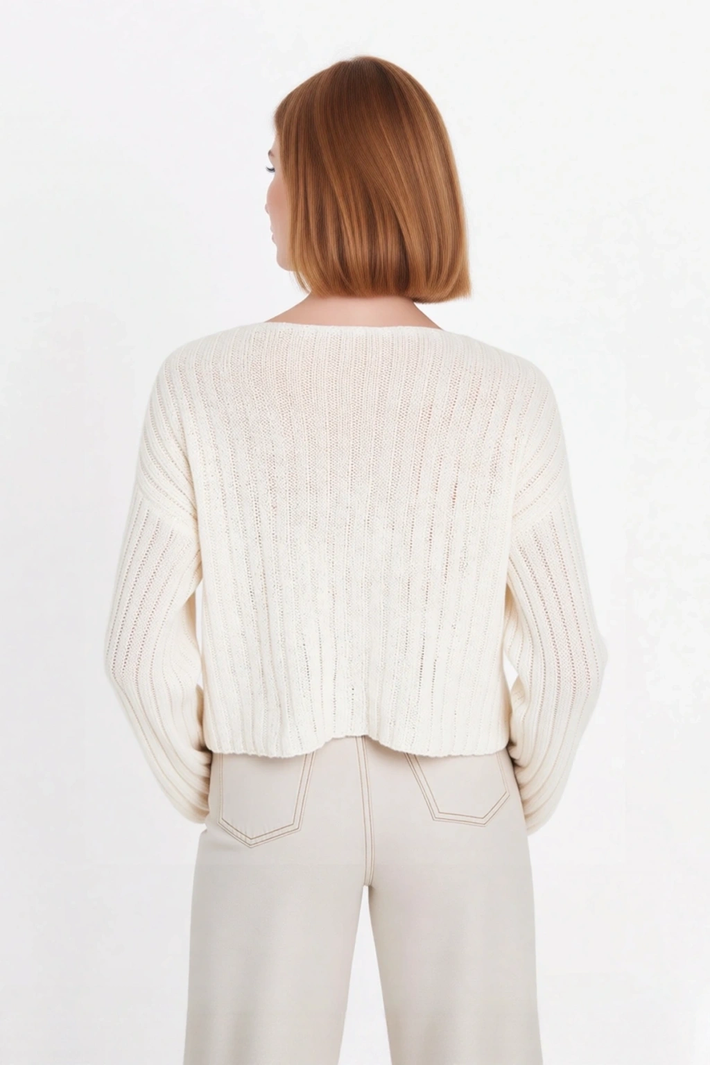 V yaka kesimi, feminen bir dokunuş katarken, standart uzun kol yapısı gün içindeki tüm hareketlerinizde size özgürlük sunar. Fitilli dokuma tipi, kazağa zarif bir doku ve görsel ilgi eklerken, triko kumaşın nefes alabilen yapısı sayesinde gün boyu ferah ve konforlu hissedersiniz. Orta kalınlıktaki yapısı, mevsim geçişlerinde ve kışın katmanlı giyimde ideal bir seçenek sunar. Cepsiz tasarımıyla temiz ve pürüzsüz bir görünüm sağlayan bu kazak, dayanıklı yapısıyla uzun yıllar boyunca gardırobunuzda yerini koruyacaktır.