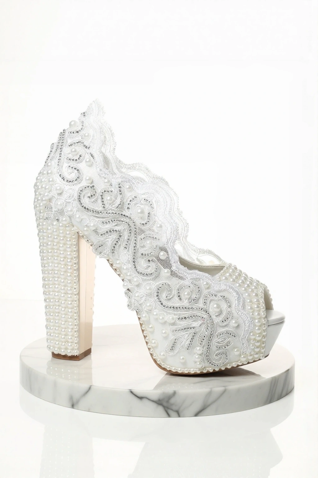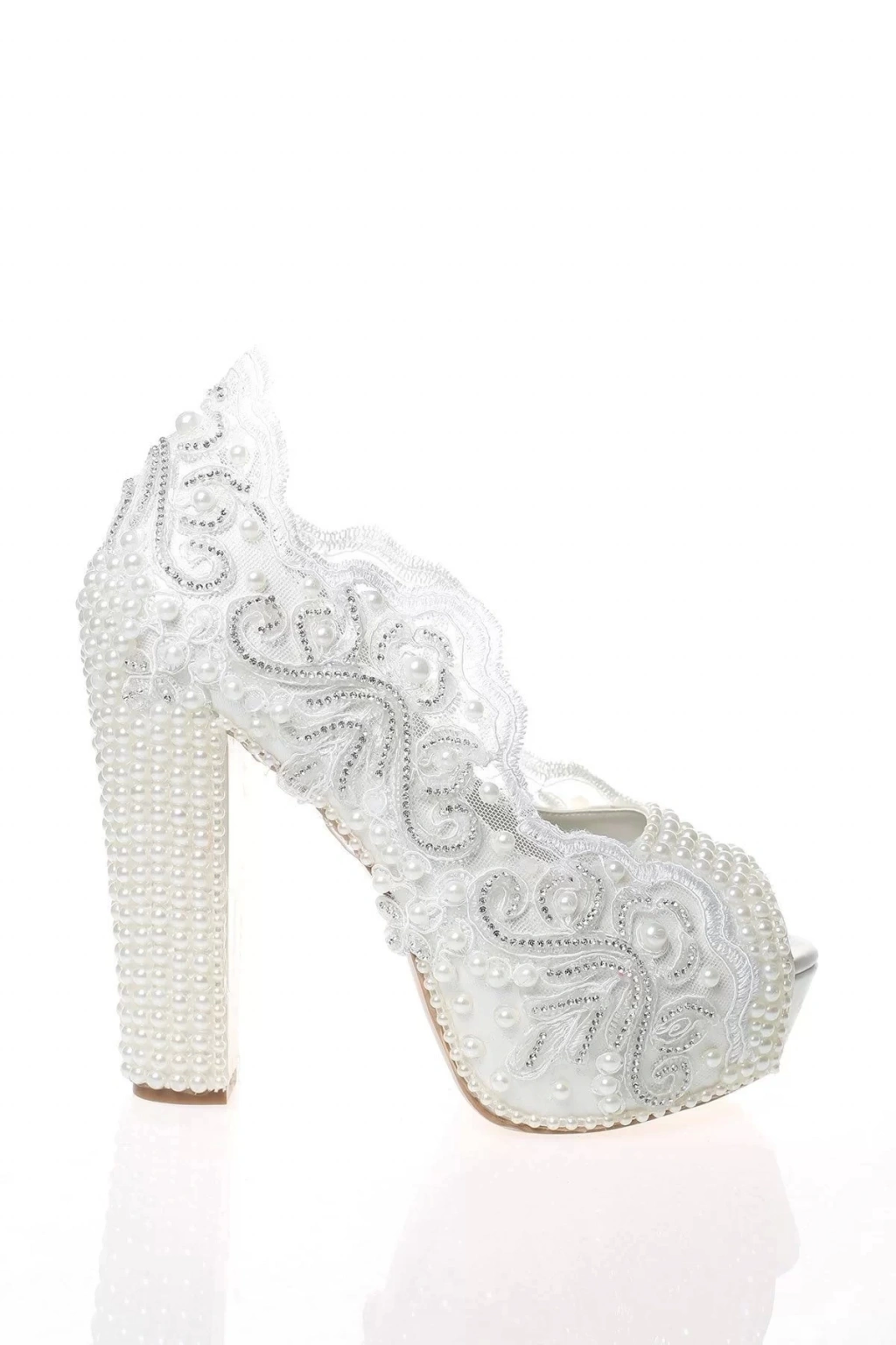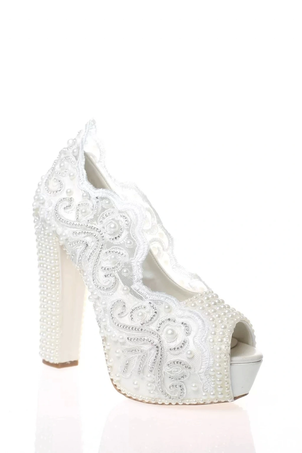 Kadın Beyaz Sedef Inci Taş Işlemeli Gelin Ayakkabı Kadın Topuklu Abiye Ayakkabı Şık Gece Ayakkabısı