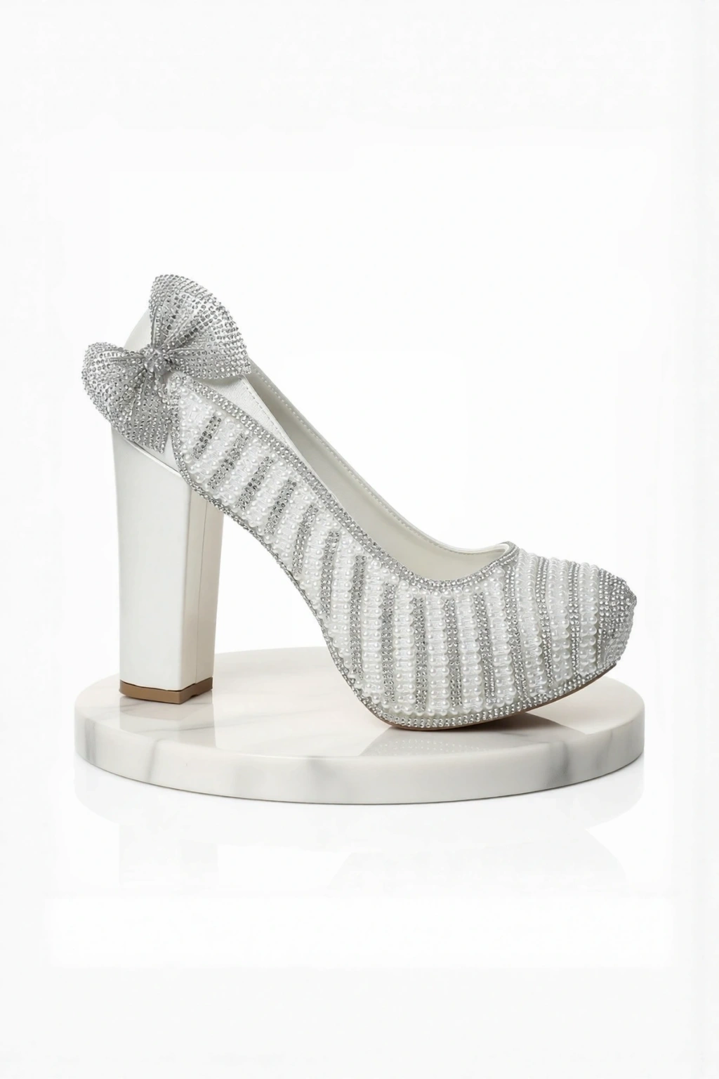 Kadın Beyaz Sedef Inci Taş Işlemeli Gelin Ayakkabı modeli, şıklığı ve konforu bir araya getirerek özel günler, davetler ve gece organizasyonları için ideal bir tercihtir. Modern tasarımı ve kaliteli yapısı sayesinde stilinize zarafet katar. Topuklu yapısıyla duruşunuzu güzelleştirirken, rahat kalıbı ile gün boyu konfor sunar.