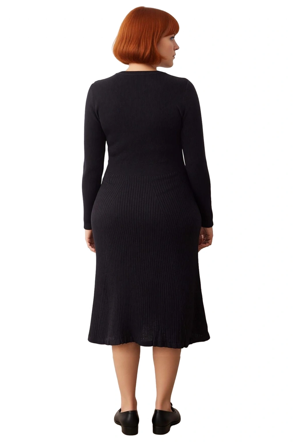 Bu şık triko elbise, özellikle sonbahar, kış ve ilkbahar aylarında gardırobunuzun yıldız parçası olacak. A-line kesimi sayesinde farklı vücut tiplerine kolayca uyum sağlar ve her zaman şık görünmenizi sağlar. Botlar, çizmeler veya topuklu ayakkabılar ile tamamlayarak casual bir gün geçirebilir, işe gidebilir ya da özel bir davette göz kamaştırabilirsiniz. Pratikliği ve zarafeti bir araya getiren bu elbise, her anınıza eşlik eder.