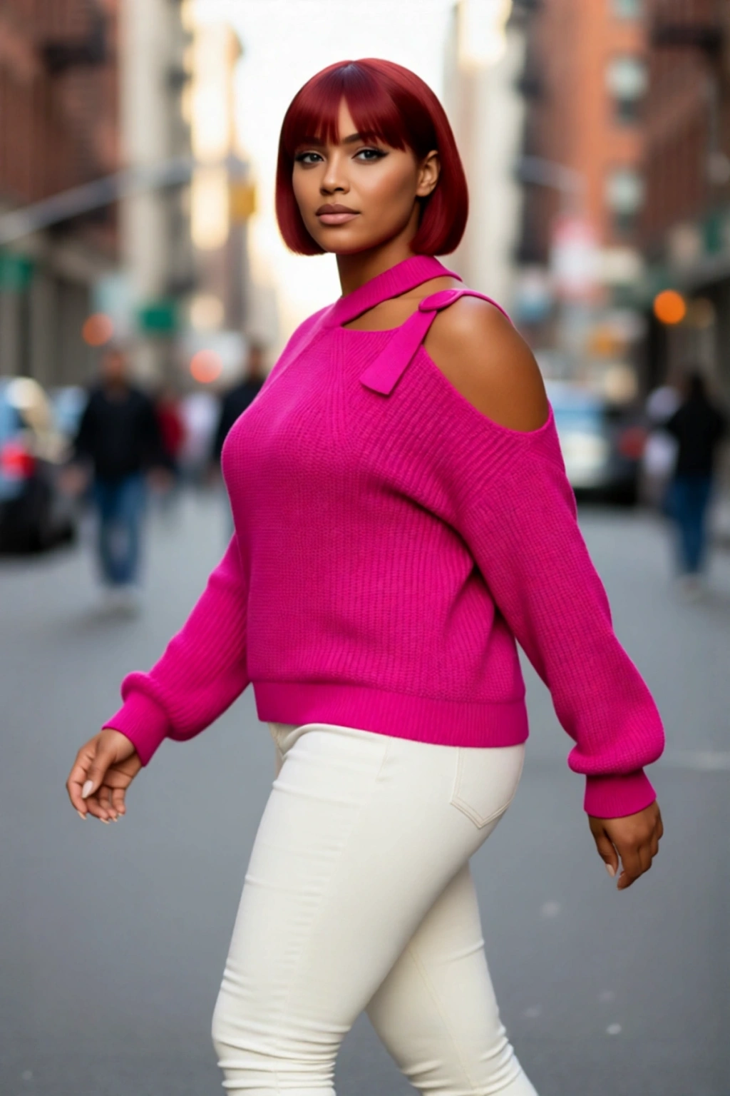 Bu şık kadın triko kazak, relaxed kalıbıyla rahatlığı ve modern çizgileri bir araya getiriyor. Yumuşak dokulu %100 akrilik materyali, serin havalarda sıcak tutarken, gün boyu konforlu bir kullanım vaat eder. Düz deseni ve enerjik pembe rengi, gardırobunuza canlılık katarken, omuz kısmındaki cesur cut out detayı ile sıradanlıktan uzaklaşmanızı sağlar. Bu kazak, stil sahibi kadınların casual ve günlük kombinlerinde göz alıcı bir parça olarak öne çıkar.