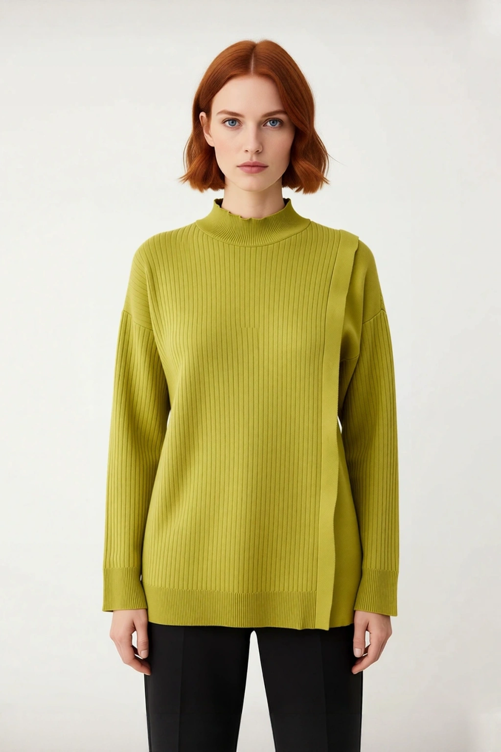 Bu modern kadın kazak, regular kalıbı ile konforlu bir kullanım sunarken, şık duruşuyla dikkat çeker. %70 viskoz ve %30 poliamid materyal bileşimi, kazağın yumuşaklığını ve sıcak tutma özelliğini pekiştirir. Ribana dokuma tipi, kazağa çağdaş bir doku kazandırırken, yağ yeşili rengiyle gardırobunuza doğal bir canlılık getirir. Tesettür giyim koleksiyonu için özel olarak tasarlanan bu parça, düz deseni ve zarif detaylarıyla minimalist bir şıklık sunar. Cool & Comfort personasına uygun yapısıyla her anınızda rahat ve stil sahibi olmanızı sağlar.