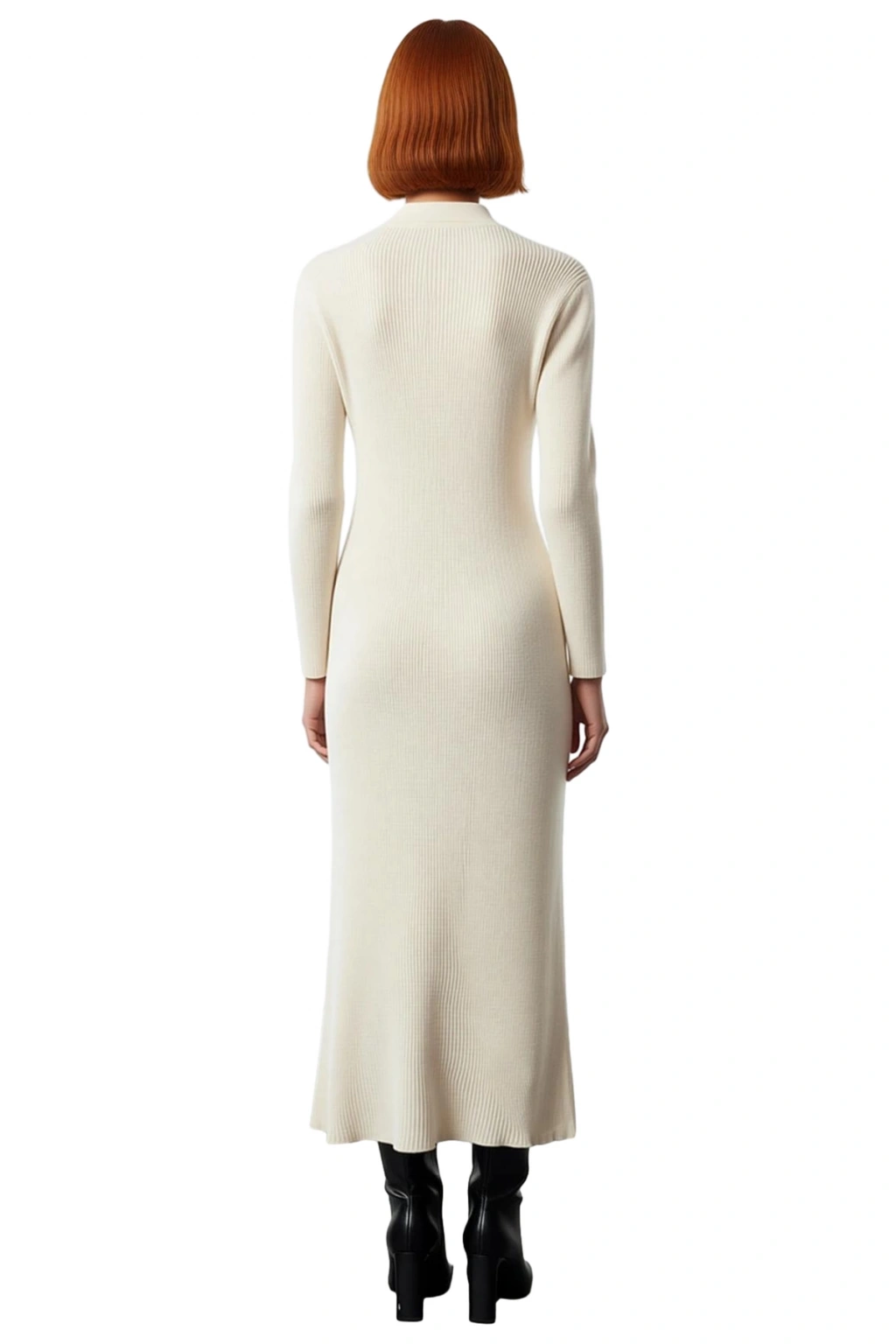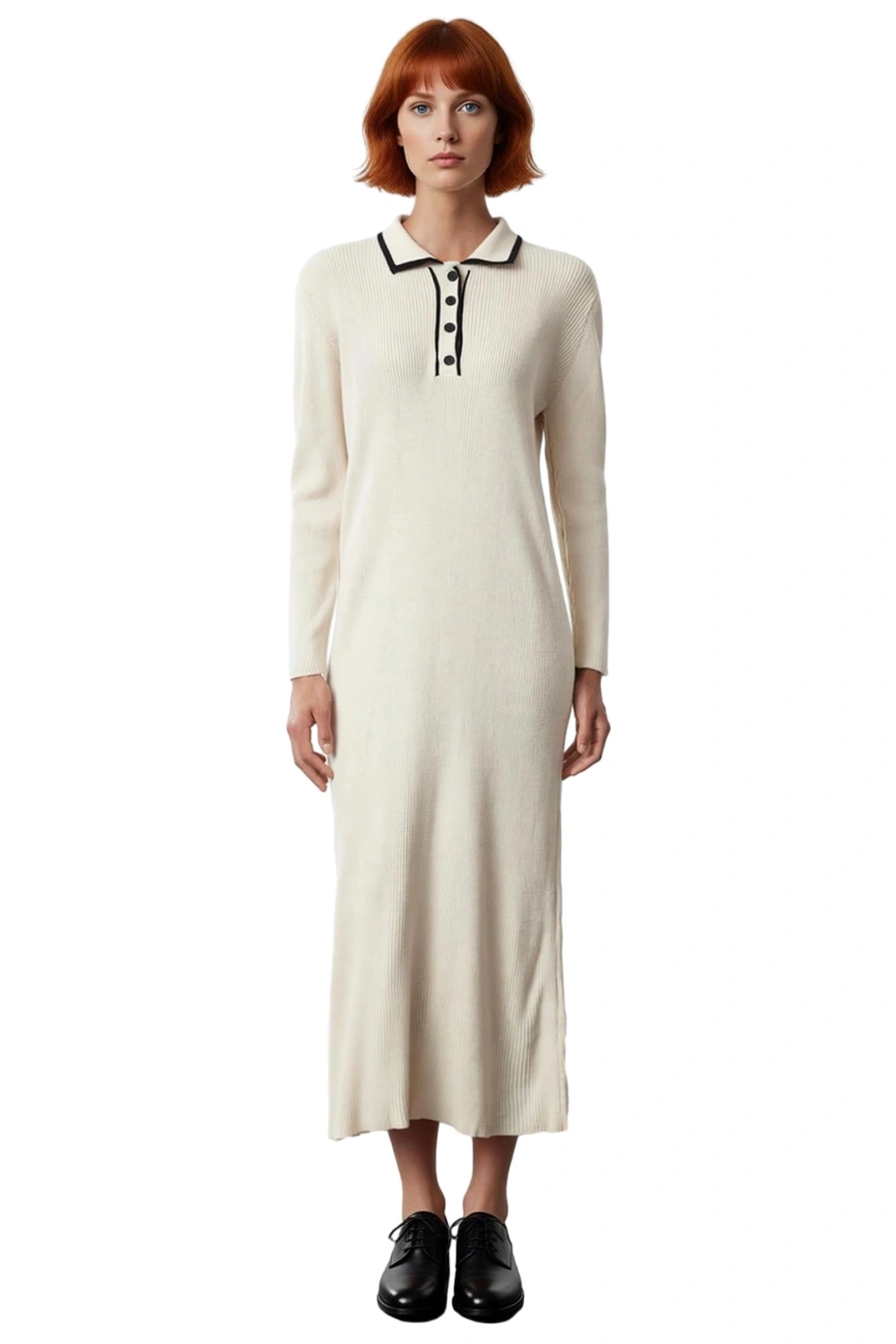 Elbisenin klasikleşen polo yaka tasarımı, düğmeli ön patıyla hem şık hem de kullanışlı bir detay sunar. Uzun ve standart kol yapısı, soğuk havalarda ekstra koruma sağlarken, kısıtlamayan yapısıyla hareket özgürlüğünüzü destekler. Triko kumaş tipi ve tek plaka dokuma tekniği, ürünün esnek, nefes alabilen ve uzun ömürlü olmasını garantiler. Astarsız ve cepsiz oluşu, elbisenin hafifliğini ve akıcı siluetini korurken, maxi boyu ile modern bir duruş sergiler. T41 yıkama talimatı sayesinde kolayca temizlenebilir ve formunu uzun süre korur.