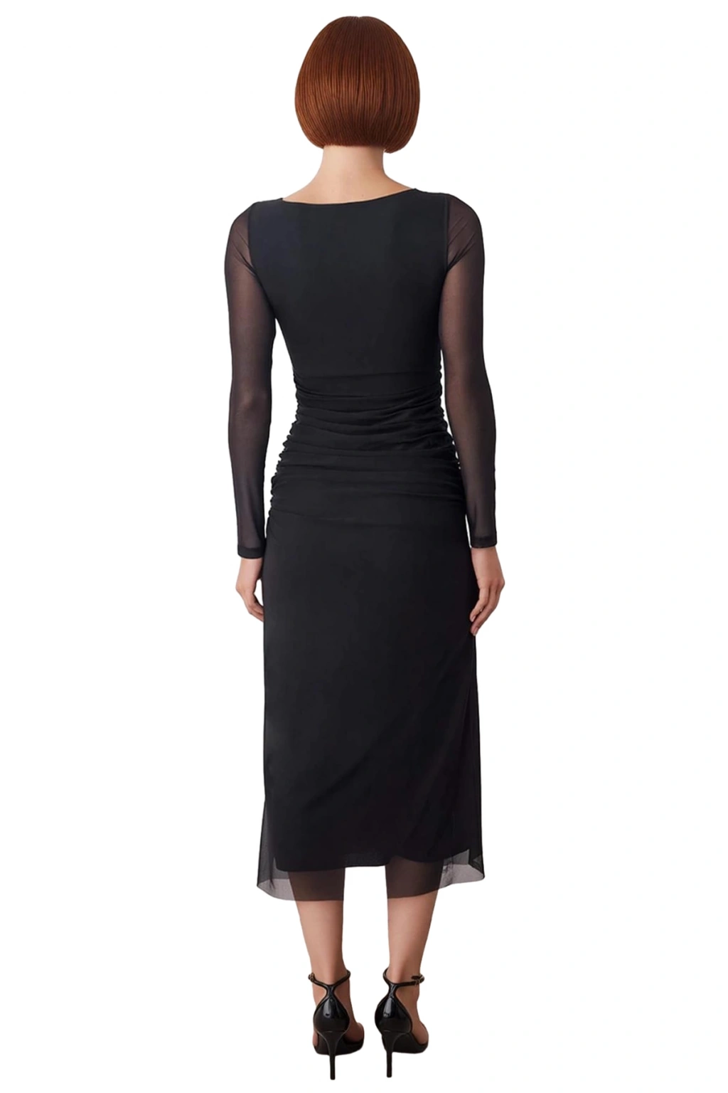 Bu çarpıcı bodycone siluet elbise, her vücut tipine uyum sağlayan kesimiyle şıklığınızı ön plana çıkarır. Özellikle kokteyl partileri, özel davetler, akşam yemekleri ve diğer resmi etkinlikler için idealdir. Siyah rengi sayesinde topuklu ayakkabılar ve minimal aksesuarlarla kolayca kombinlenebilir. Kış mevsimindeki kapalı mekan davetlerinde veya sonbahar/ilkbahar aylarının serin akşamlarında rahatlıkla tercih edebilirsiniz.