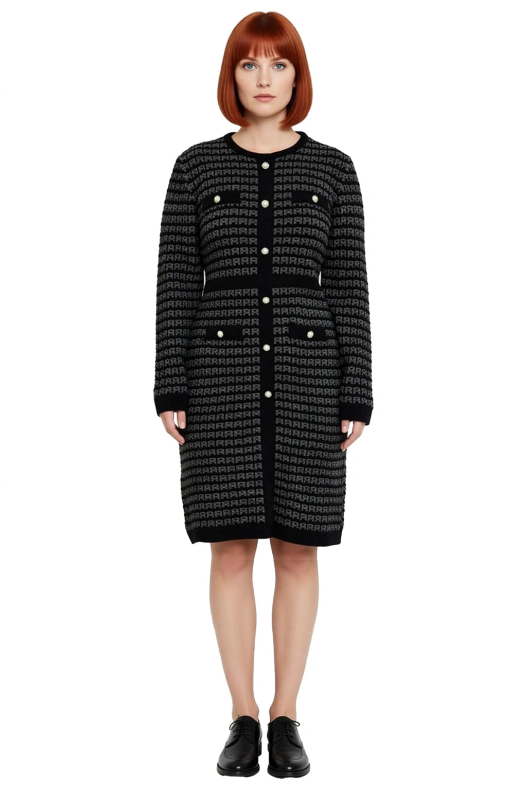 Bisiklet yaka tasarımı, elbiseye klasik bir dokunuş katarken, uzun standart kolları soğuk havaya karşı tam koruma sağlar ve gün boyu konfor sunar. Çift plaka dokuma tekniğiyle üretilen triko kumaş, yıpranmaya karşı dirençli olup uzun süreli kullanım vaat eder. Astarsız yapısı sayesinde hafiflik hissi verirken, vücudu sıkmadan rahat bir oturuş sağlar. Ön kısmında yer alan dekoratif düğmeler ve cep görünümlü detaylar, elbiseye zengin bir estetik katarken, cepsiz ve kemersiz tasarımı minimalist bir şıklık sunar. Kolay bakımı sayesinde pratik bir kullanım sunar.