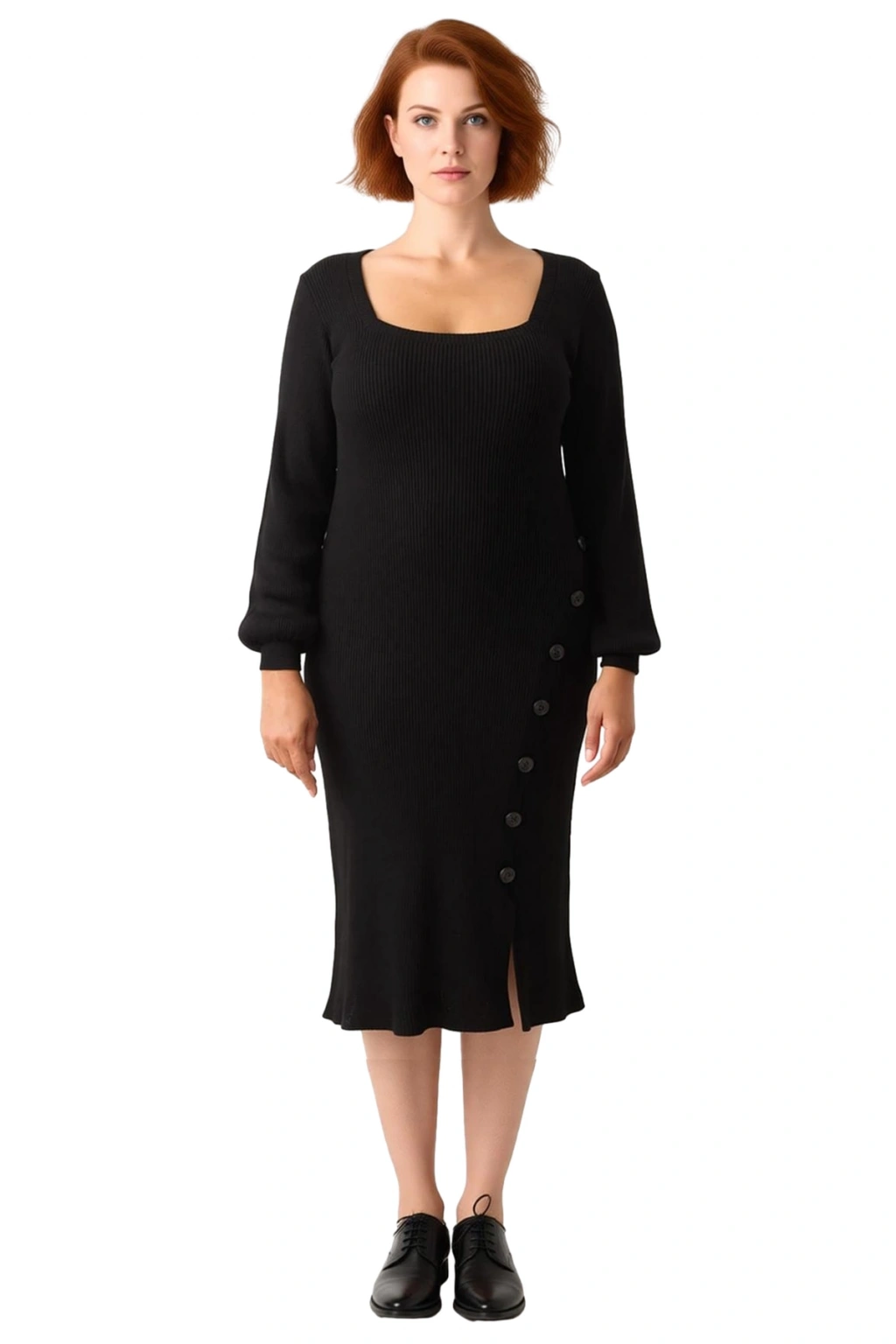 Elbisenin en çarpıcı detaylarından biri olan yanlardaki düğmeler ve zarif yırtmaç, modern bir dokunuş katarken, aynı zamanda hareket kolaylığı sunar. Standart kol yapısı rahat bir kullanım sağlarken, triko kumaşın yumuşak dokusu gün boyu üzerinizde olduğunu unutturur. Bu elbise, dayanıklılığı ve kolay bakımıyla da öne çıkar; makinede yıkanabilir özelliği sayesinde pratik bir kullanım sunar ve uzun süre formunu korur. Kaliteli materyali sayesinde tüylenme yapmaz ve her zaman yeni gibi görünür.