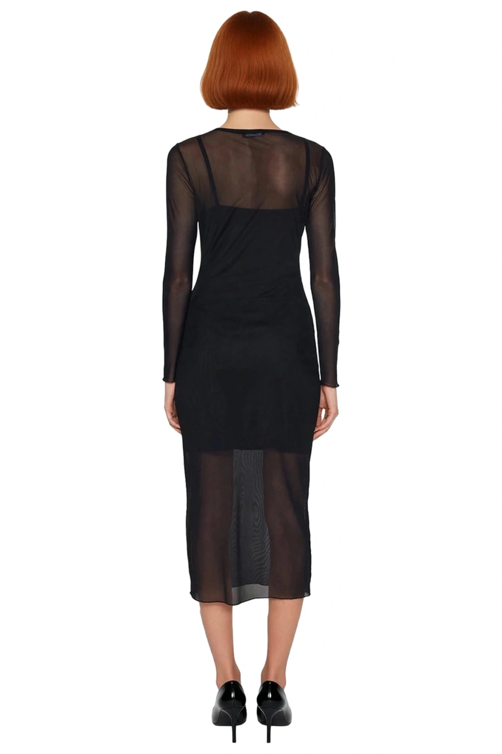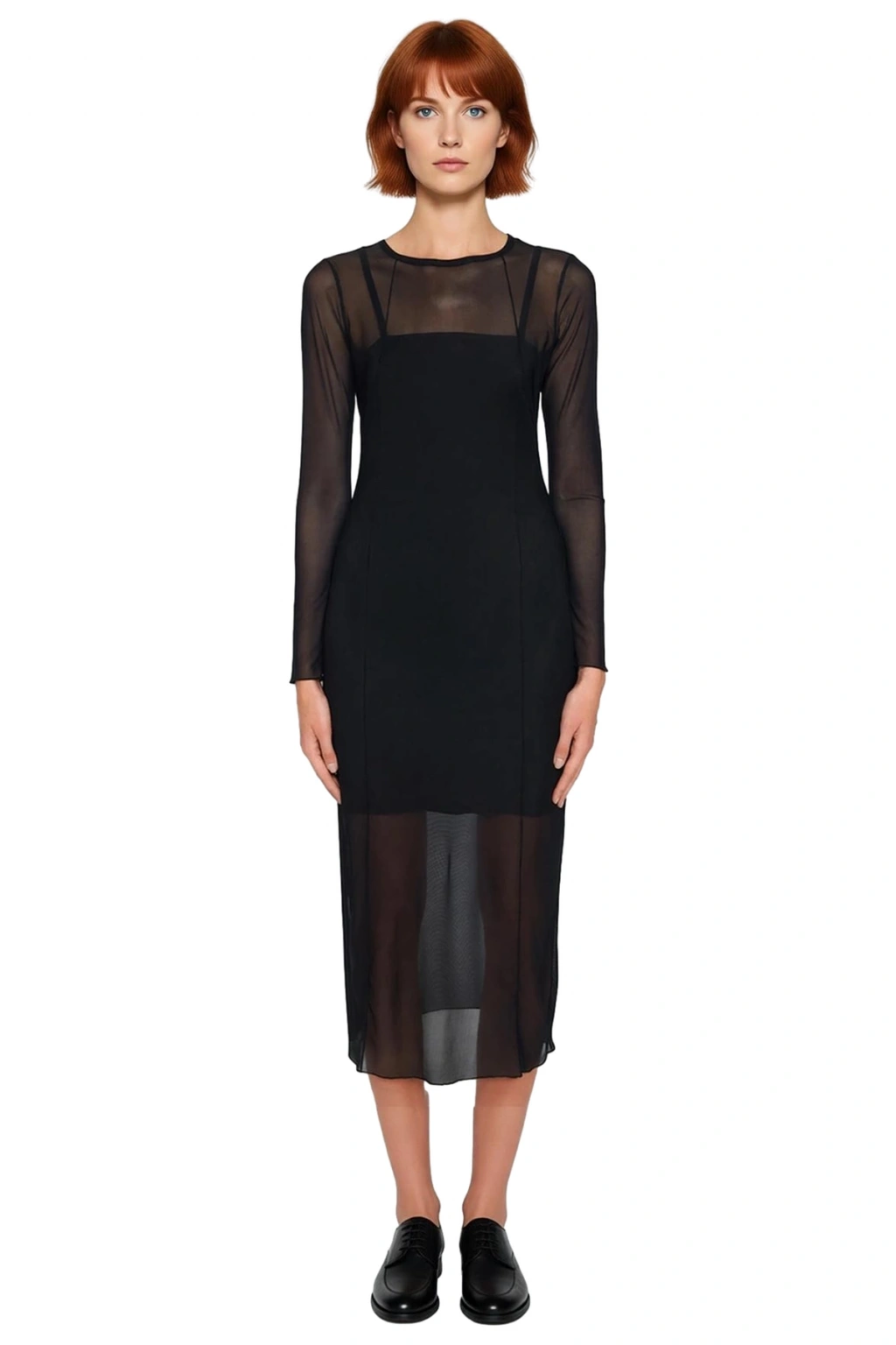 Bisiklet yaka kesimi, elbisenin modern ve minimalist duruşunu pekiştirerek her türlü ortama uyum sağlar. Uzun ve standart kol tasarımı, özellikle soğuk kış aylarında ekstra sıcaklık ve koruma sağlarken, esnekliği sayesinde gün boyu konforlu bir kullanım sunar ve her türlü dış giyimle kolayca kombinlenebilir. Örme kumaş yapısı, teninize hoş ve yumuşak bir dokunuş sunarken, tül detayı sayesinde farklı ve sofistike bir doku katmanı oluşturur. Astarlı olması, elbisenin daha tok ve şık durmasını sağlar, iç göstermez ve giyim konforunu artırır. Kemersiz oluşu, kendi tarzınızı yansıtmanız için çeşitli aksesuarlarla kişiselleştirme imkanı tanır. Kaliteli ve dayanıklı materyali sayesinde uzun süre formunu korur ve kolayca yıkanabilir, pratik bir kullanım sunar.