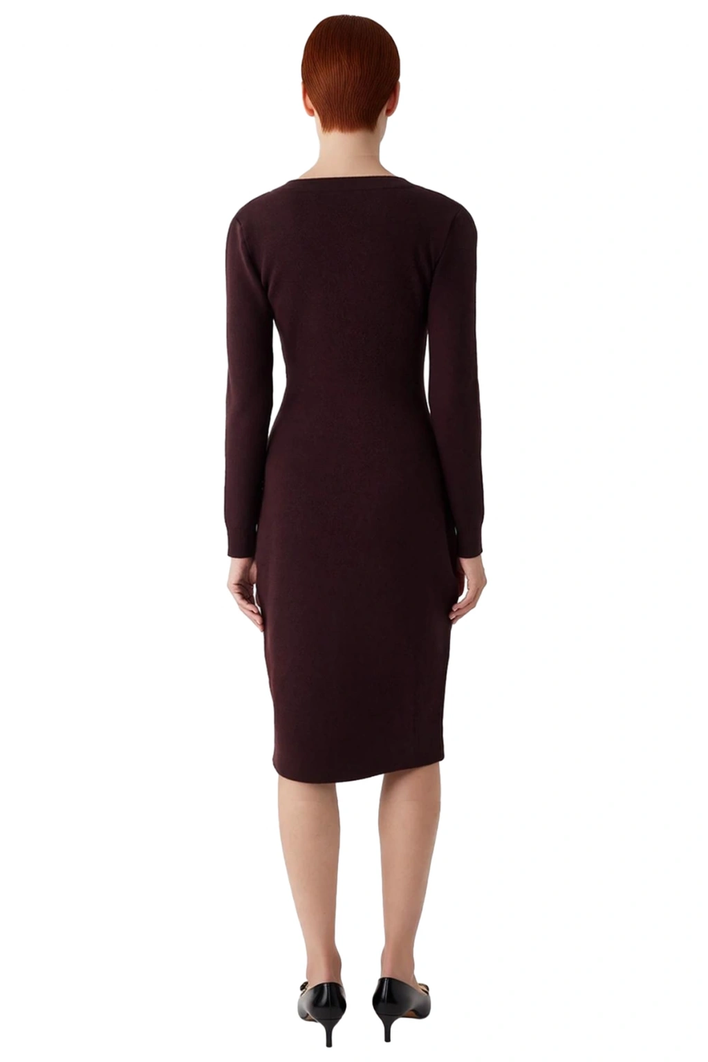 Ürün Özellikleri: Bodycon kalıp, viskoz polyester poliamid materyal, düz desen, V yaka, standart kol, triko kumaş, kahverengi renk.