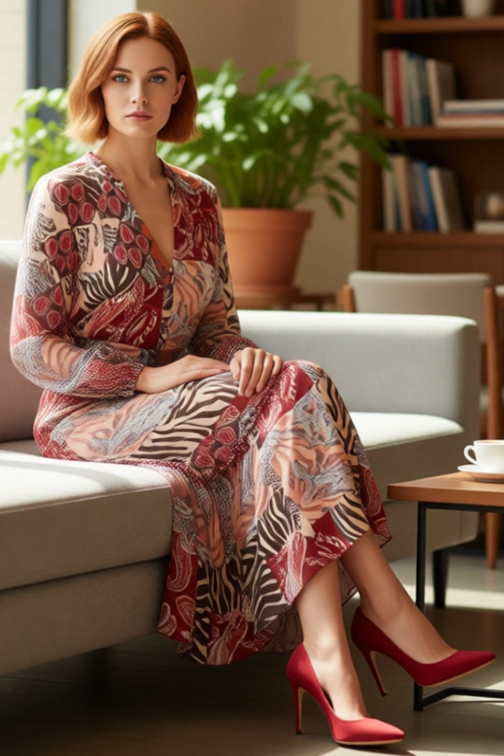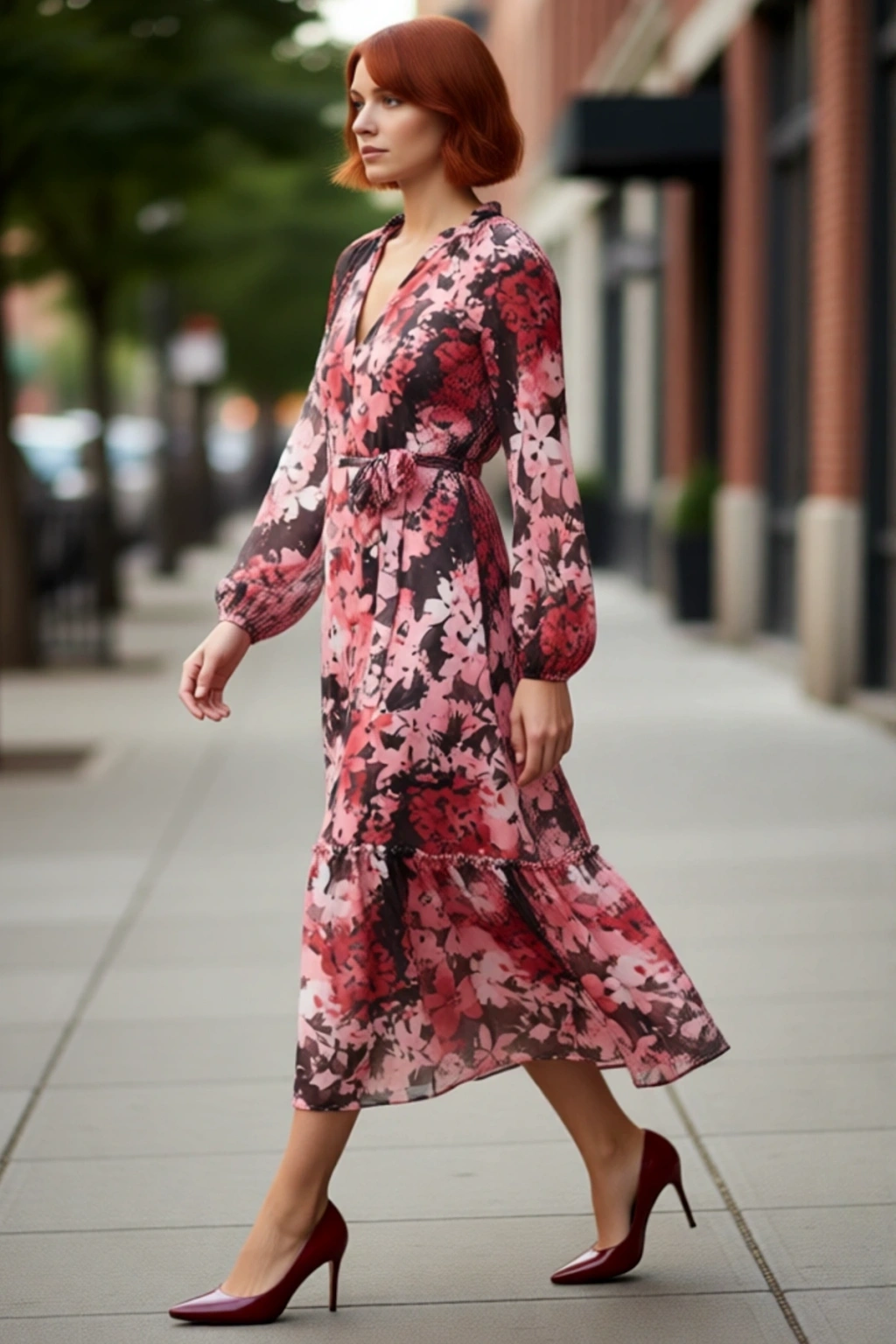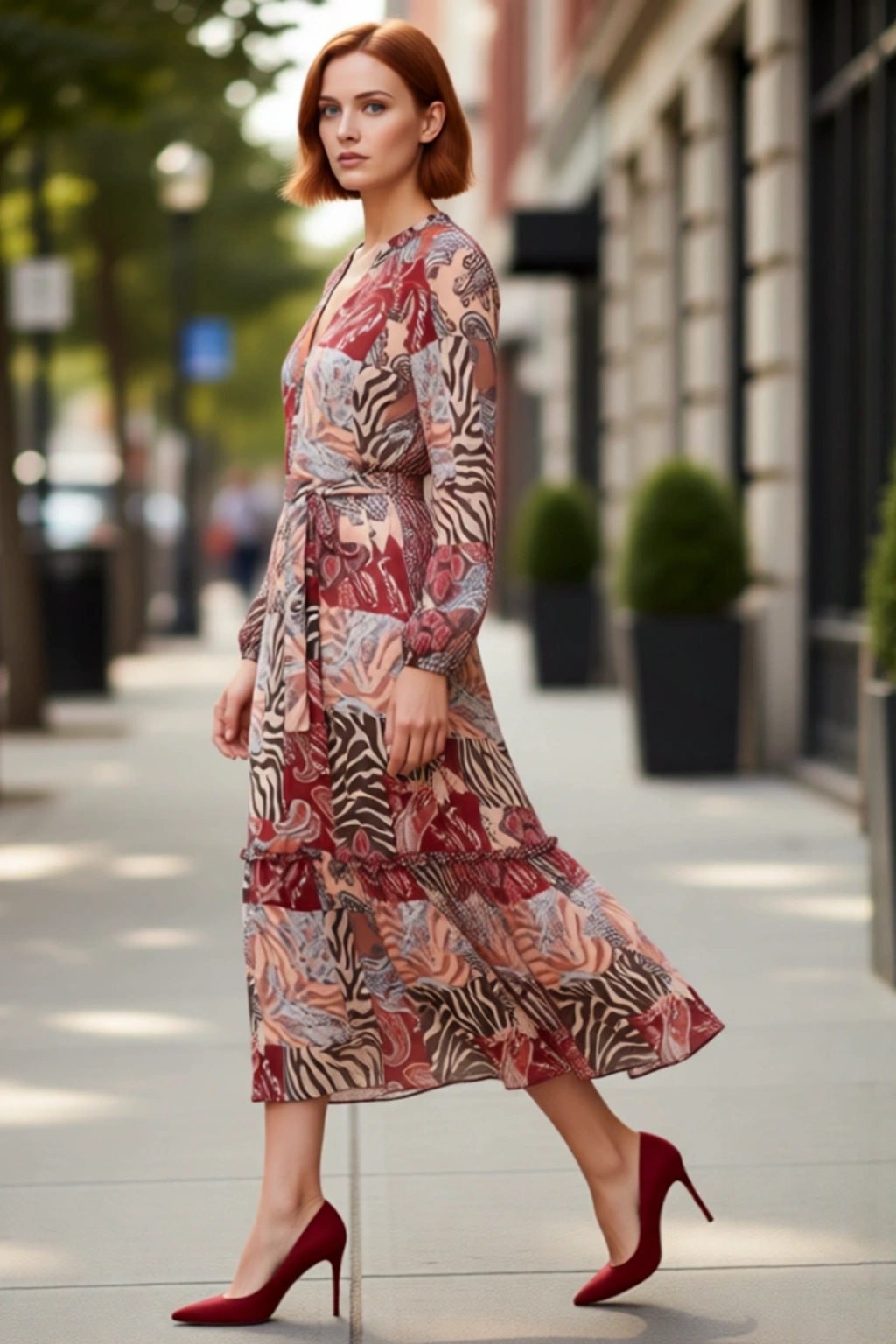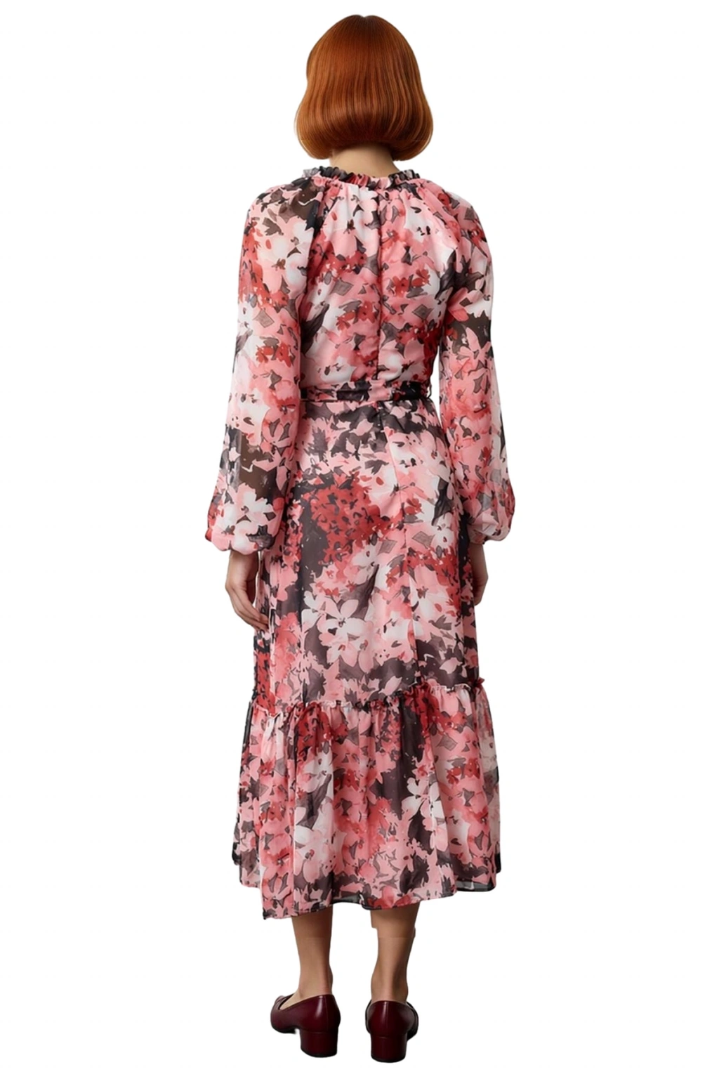 Ürün Özellikleri: A-line kalıp, polyester materyal, şal desen, V yaka, uzun standart kol, şifon dokuma kumaş, çok renkli.