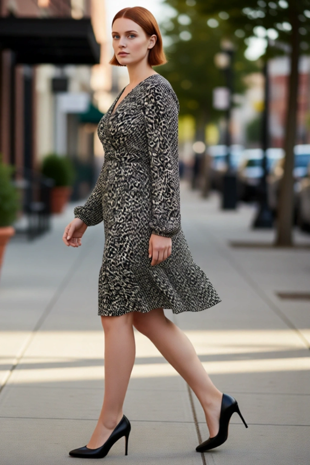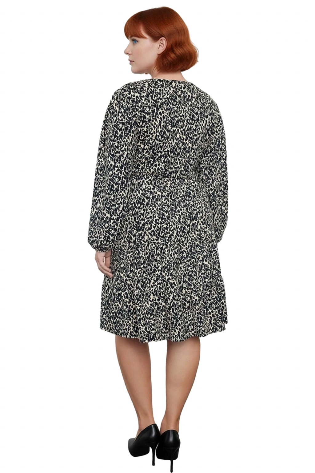 Ürün Özellikleri: A-line kalıp, polyester karışımlı materyal, leopar desen, V yaka, standart kol, örme kaşkorse kumaş, çok renkli.