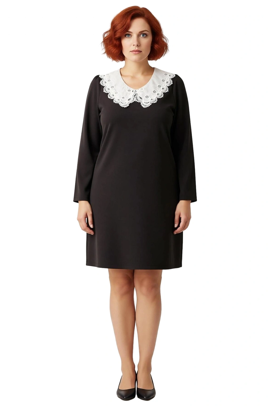 Bu şık Kadın Büyük Beden A-line siyah mini elbise, zarif bebe yaka detayı ile her ortamda dikkatleri üzerinize çeker. Vücuda rahatça oturan A-line kalıbı, hareket özgürlüğü sunarken aynı zamanda modern ve feminen bir siluet yaratır. Yüksek kaliteli polyester ve elastan karışımı materyali sayesinde gün boyu konfor ve esneklik sağlar. Renk bloklu tasarımı, siyahın asaleti ile bebe yakanın beyaz dantelini harmanlayarak zamansız bir şıklık sunar. Dokuma kumaşı, dayanıklı yapısıyla uzun süreli kullanım vadederken, astarsız oluşu hafif bir his bırakır. Bu elbise, gardırobunuzun vazgeçilmez parçası olmaya aday.