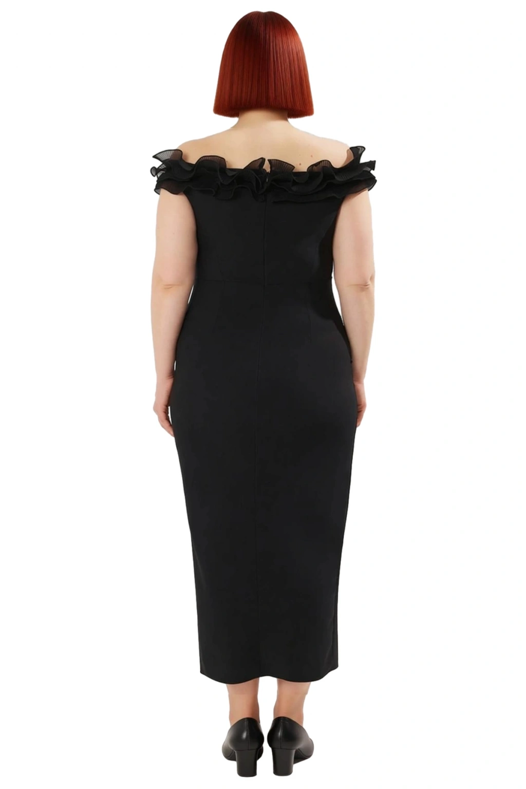 Zarafetin ve şıklığın mükemmel birleşimi olan bu Kadın Büyük Beden Siyah Elbise ile tüm dikkatleri üzerinize çekin. A-line kalıbı sayesinde vücudunuza mükemmel bir şekilde otururken, carmen yaka ve fırfır detayları omuz ve dekolte bölgenizi zarifçe ortaya çıkarır. Düz deseni ve siyah rengi, klasik ve zamansız bir şıklık sunar. Esnek polyester ve elastan karışımı materyali, gün boyu süren konfor ve hareket özgürlüğü sağlar. Büyük beden koleksiyonuna ait bu özel tasarım, her kadının kendini güzel ve özel hissetmesi için idealdir.
