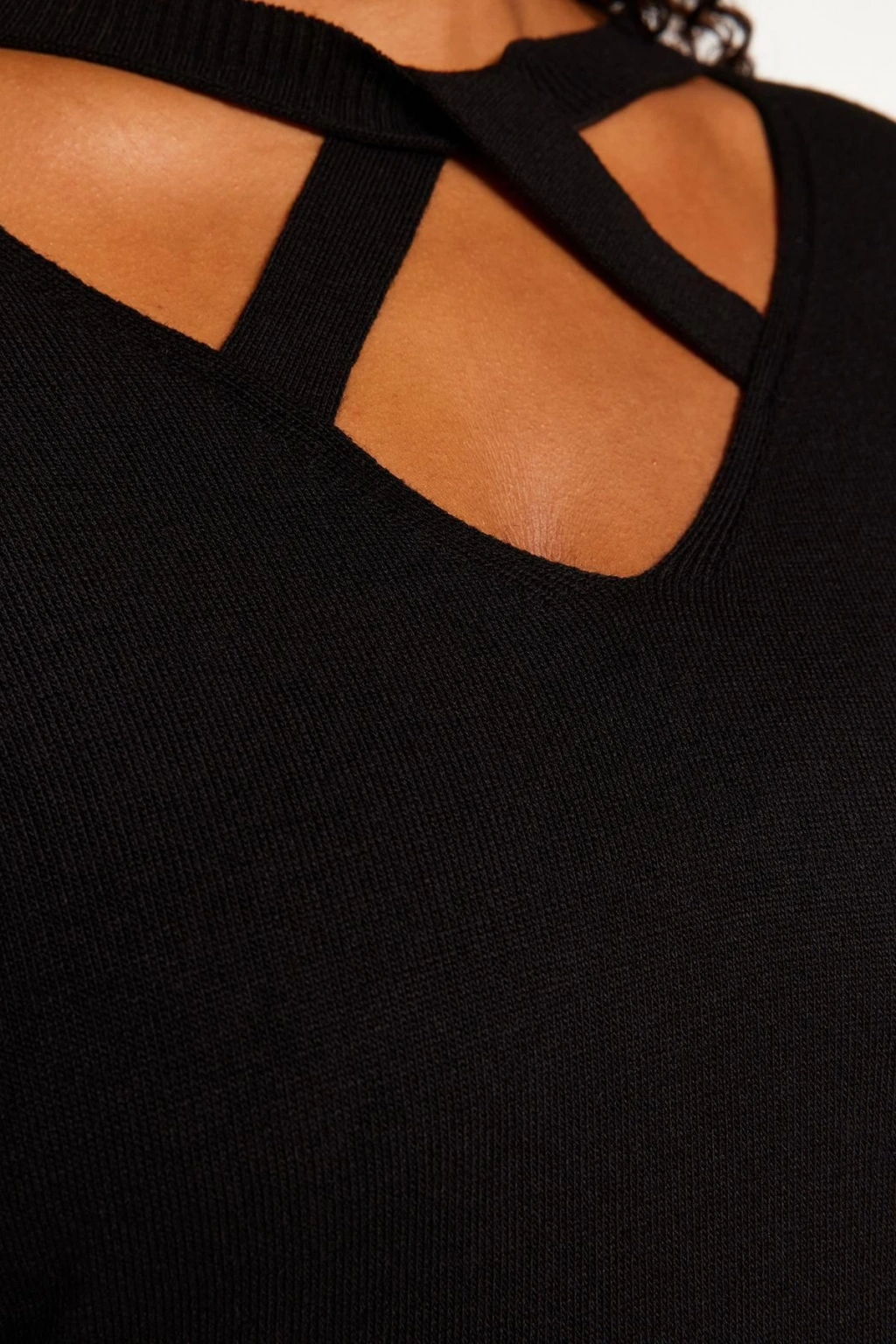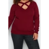 Kadın Büyük Beden Moda Şık Regular V Yaka Uzun Kol Düz Pencere Cut Out Detaylı Triko Kazak