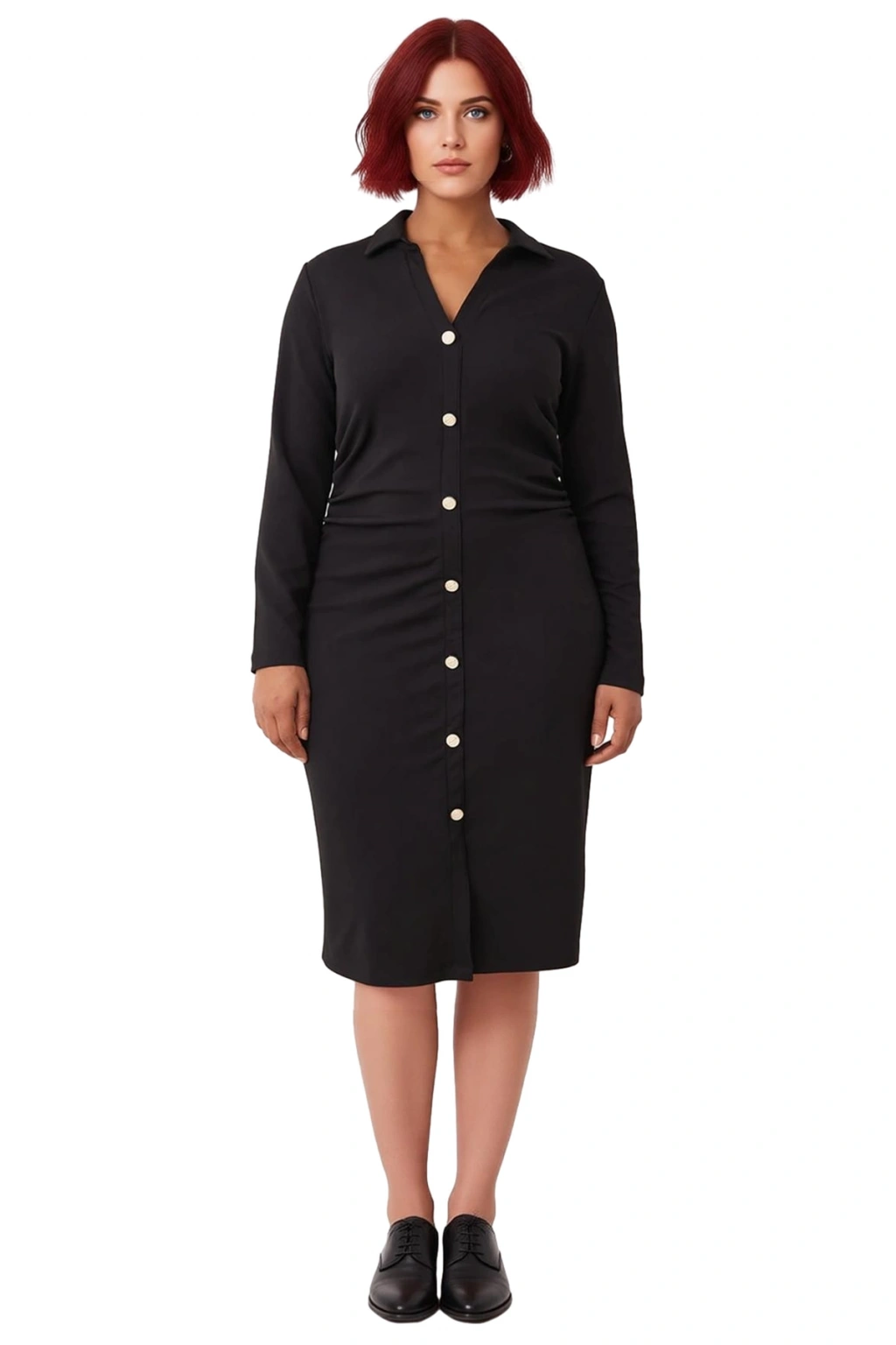 Büyük beden kadınların tarzını yansıtan bu elbise, ofis şıklığından günlük buluşmalara kadar geniş bir kullanım yelpazesi sunar. Sonbahar ve kış aylarında çizmelerle, ilkbaharda ise zarif topuklu ayakkabılarla kombinleyerek farklı stiller yaratabilirsiniz. Hem resmi hem de casual ortamlar için ideal olan bu midi elbise, gardırobunuzun kurtarıcı parçası olacak ve her anınızda size eşlik edecektir.