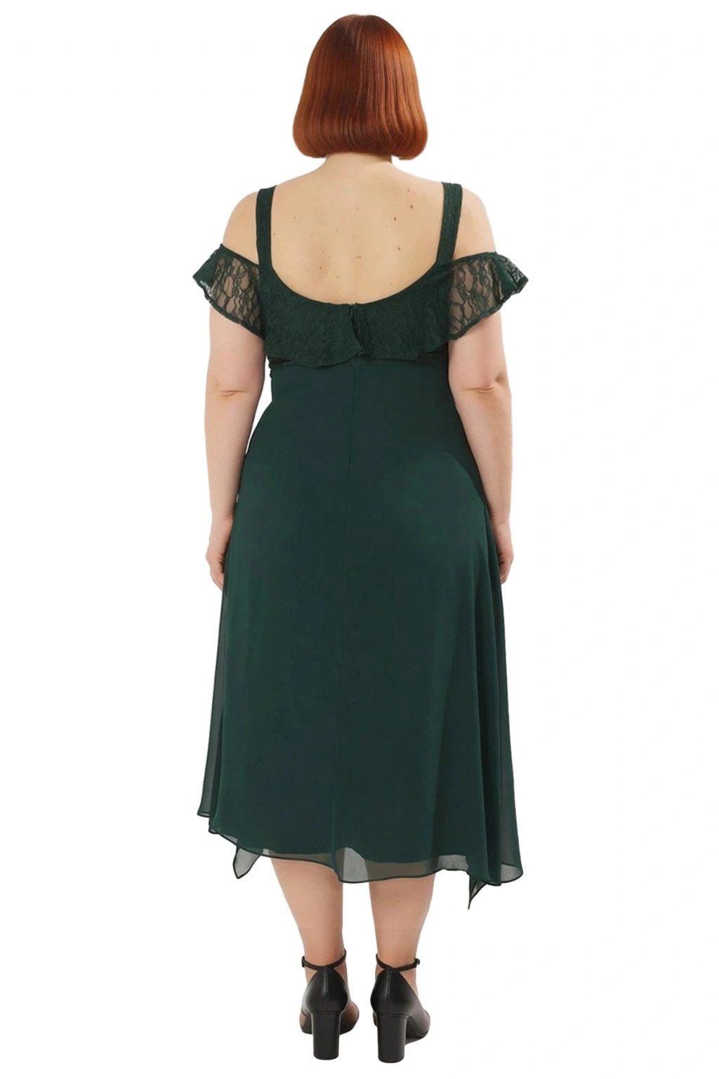 Bu kadın büyük beden elbise, skater kalıbı ile vücudu saran üst kısmı ve hareketli etek kesimiyle modern bir şıklık sunar. %100 polyester materyalden üretilen dokuma şifon kumaşı, hafif ve nefes alabilen yapısıyla özellikle sıcak havalar için idealdir. Canlı yeşil rengi ve düz deseni, zamansız bir zarafet katarken, eteği fırfırlı silueti elbiseye dinamik ve çekici bir görünüm kazandırır. Bu elbise, özel anlarınızda göz kamaştırmanız için tasarlandı.
