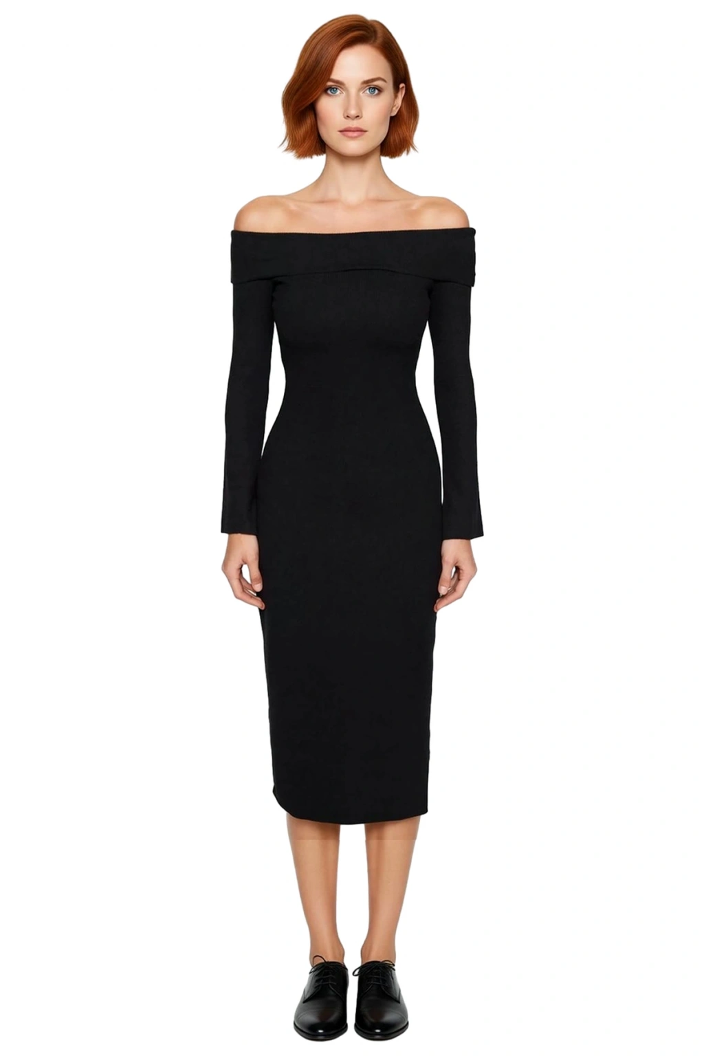 Soğuk kış aylarında bile zarafetinizden ödün vermek istemeyen kadınlar için tasarlanmış bu bordo midi elbise, bodycon kalıbıyla vücuda tam oturur ve şık bir siluet sunar. Polyester karışımlı örme materyali sayesinde hem sıcak tutar hem de esnek yapısıyla hareket özgürlüğü sağlar. Carmen yaka tasarımı, omuzlarınızı açıkta bırakarak feminen ve sofistike bir görünüm kazandırır. Düz deseni ve baskısız duruşuyla sadeliği sevenler için ideal olan bu parça, gündüzden geceye her ortama kolayca adapte olabilir.