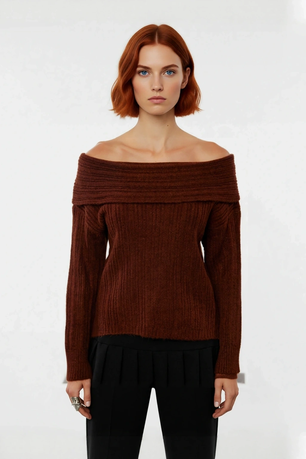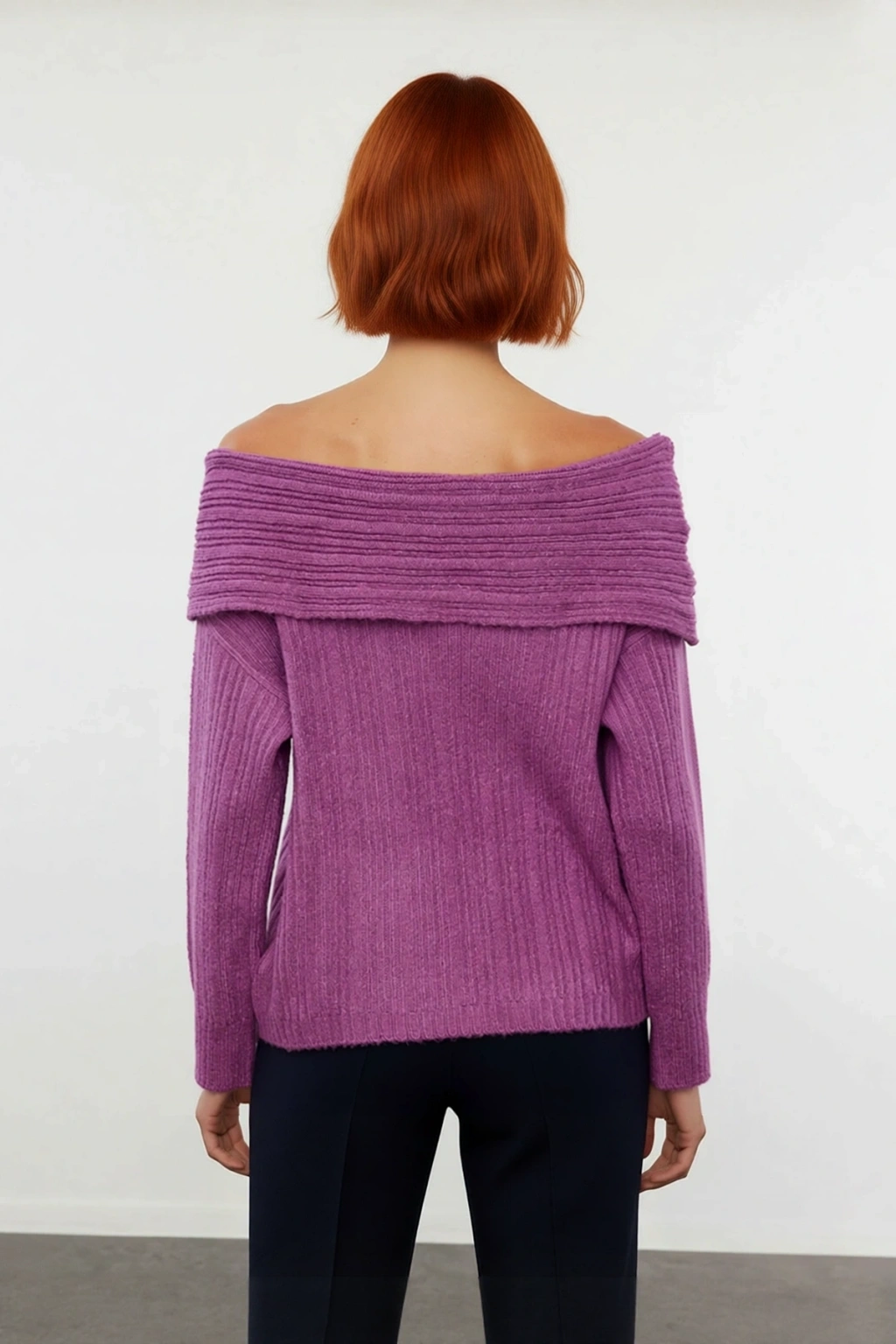 Ürün Özellikleri: Regular kalıp, 80% Akrilik 20% Polyester materyal, düz desen, Carmen yaka, standart kol, triko kumaş, bordo renk, fitilli dokuma.