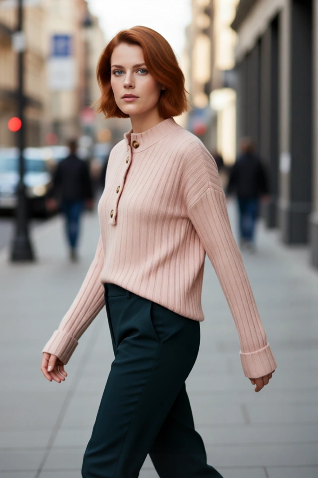 Orta kalınlıktaki bu triko kazak, selanik dokuma kumaş tipi ile hem dayanıklılığı hem de estetik bir fitilli yüzeyi bir araya getirir. Düşük kol tasarımı, modern ve rahat bir duruş sergileyerek hareket özgürlüğünüzü artırır. Uzun kol boyu kış aylarında ekstra sıcaklık sağlarken, düğmeli yaka detayı kolay giyim imkanı sunar ve şıklığınızı pekiştirir. Regular boyu ve basic silueti sayesinde her vücut tipine kolayca uyum sağlar, gardırobunuzun temel parçalarından biri haline gelir. Kolay bakımı sayesinde makinede yıkanabilir özelliği, pratik bir kullanım sunar.
