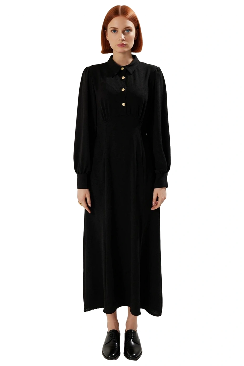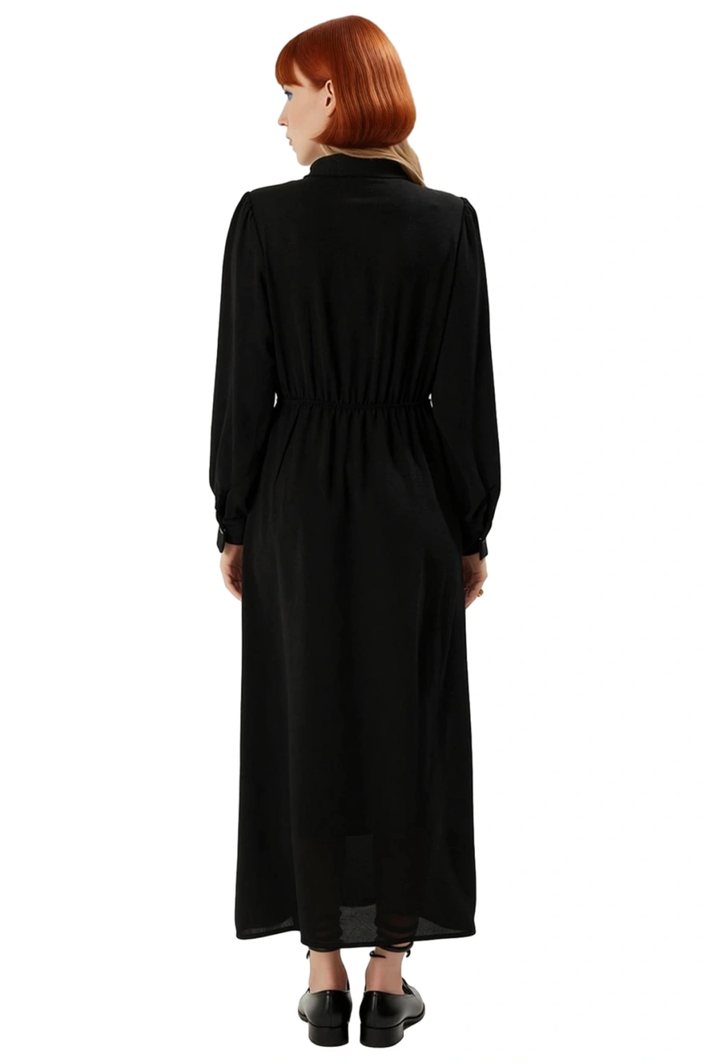 Gömlek yaka detayı, elbiseye klasik ve sofistike bir dokunuş katarken, ön kısmındaki dikkat çekici düğmeler fonksiyonel ve şık bir tamamlayıcıdır. Standart uzun kolları, manşet detaylarıyla tamamlanmış olup, hareket özgürlüğünü kısıtlamadan zarif bir duruş sergiler. Astarsız tasarımı ile yaz sıcaklarında bile ferah bir kullanım sunarken, Aerobin dokuma kumaşın kırışmaya dayanıklı yapısı sayesinde gün içinde pratik bir şıklık sunar. T10 yıkama talimatına uygun olması, bakımını oldukça kolaylaştırır ve uzun ömürlü kullanım garantisi verir.
