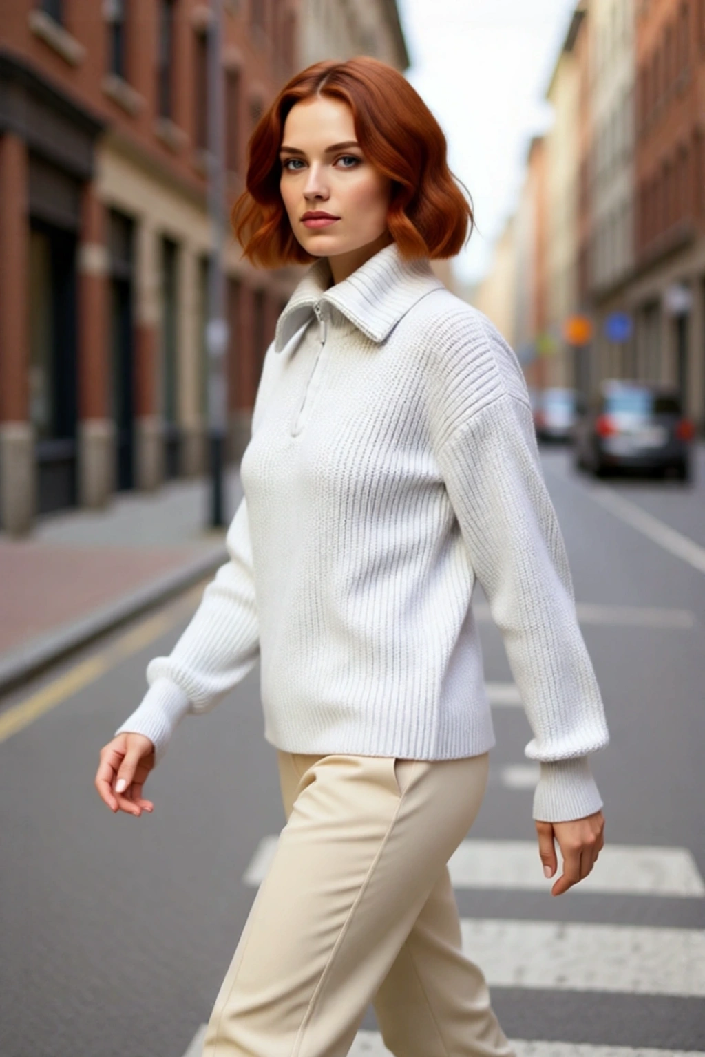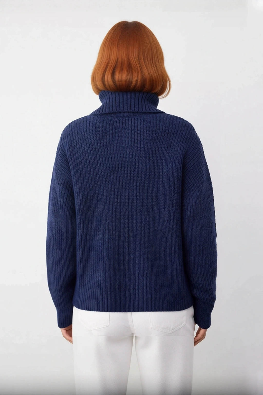 Fermuarlı dik yaka tasarımı, hem estetik hem de fonksiyonel bir özellik sunarak, rüzgarlı havalarda boynunuzu korur ve isteğe bağlı havalandırma imkanı sağlar. Düşük kol tipi ve uzun kol boyu, hareket özgürlüğünü artırırken, rahat ve çağdaş bir siluet yaratır. Selanik dokuma tekniği, kazağın yüzeyine zarif bir doku ve hacim katarken, triko kumaşın esnek ve nefes alabilir yapısı sayesinde gün boyu kendinizi iyi hissetmenizi sağlar. Bu özel materyal bileşimi, kazağın uzun yıllar boyunca ilk günkü formunu ve rengini korumasına yardımcı olur. Ayrıca, kolay bakım özellikleri sayesinde, yoğun yaşam tarzınıza pratik bir çözüm sunar.
