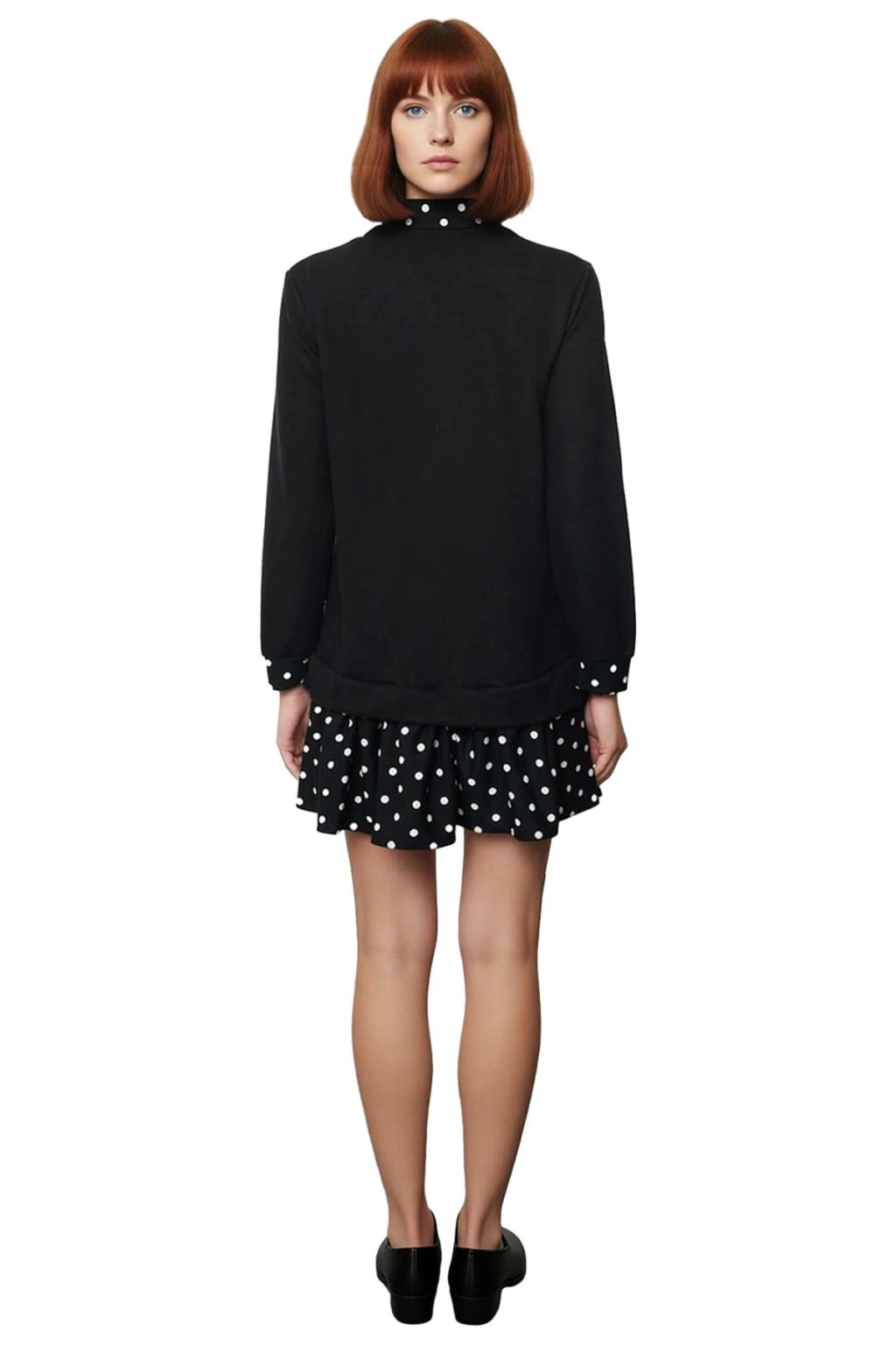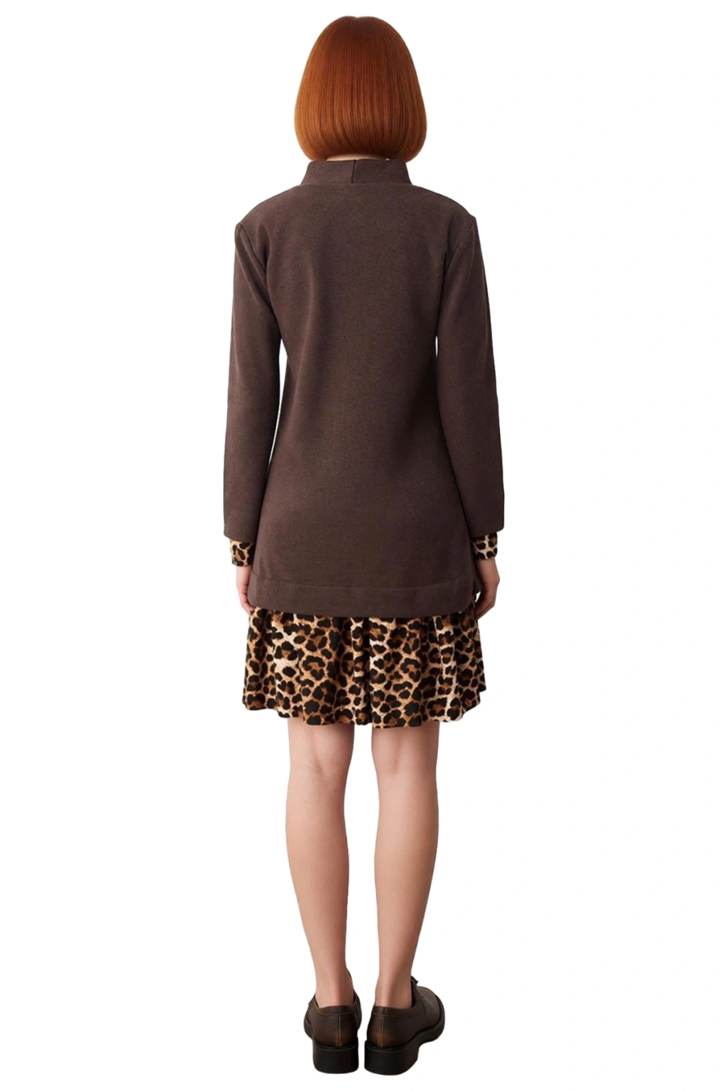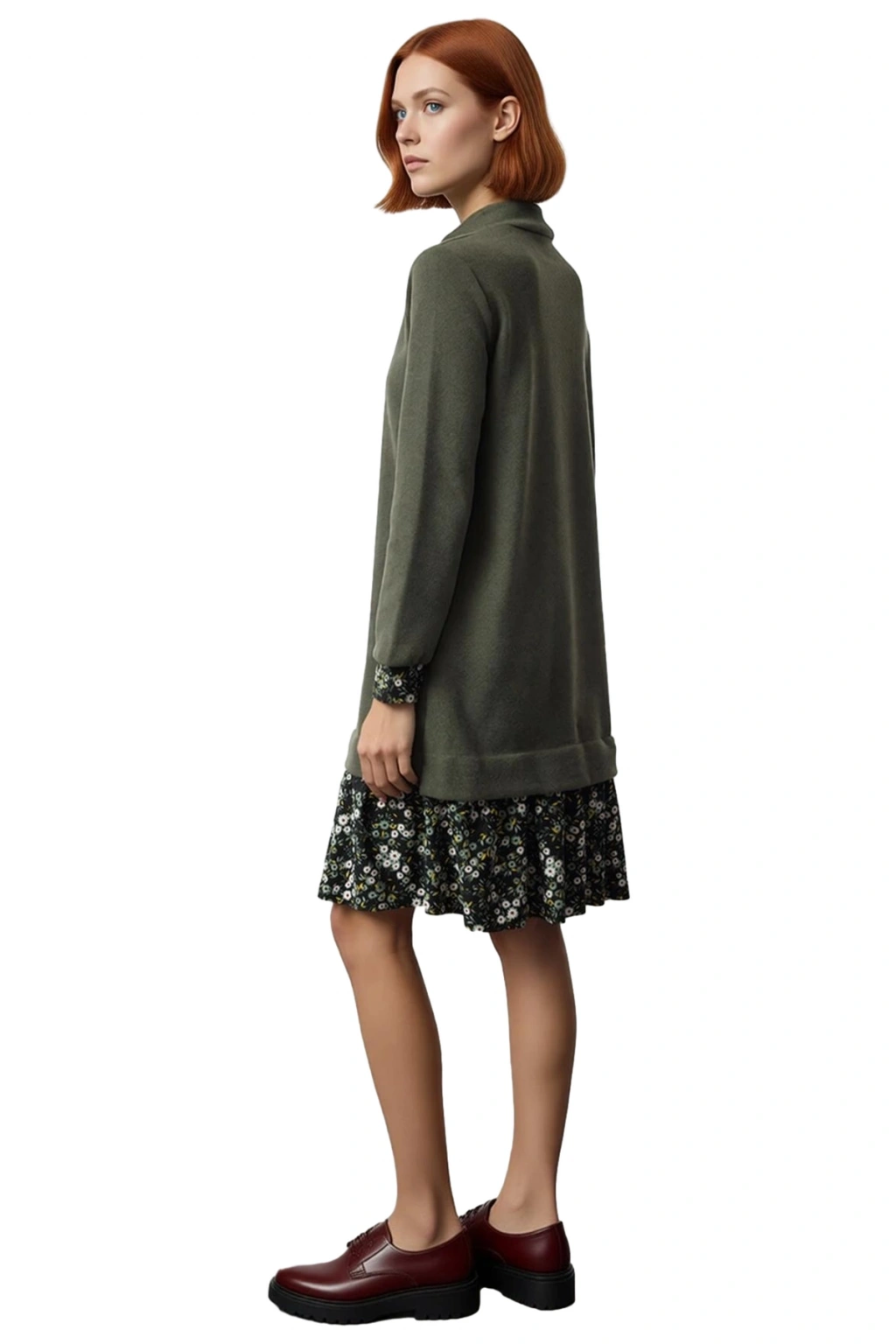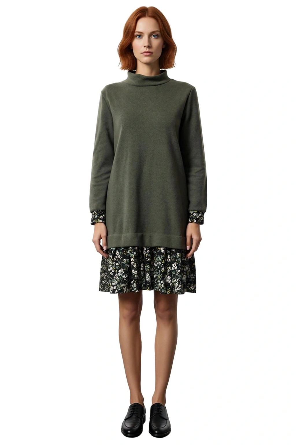 Dik yaka tasarımı, soğuk havalarda boynunuzu korurken, aynı zamanda modern ve sofistike bir dokunuş katar. Uzun ve standart kol tipi, kullanımı kolaylaştırır ve soğuktan korunmanızı sağlar. Selanik örme kumaşının kendine has dokusu, elbiseye zengin bir görünüm kazandırır ve yumuşak hissiyle giyim konforunu artırır. Astarsız olmasına rağmen iç göstermeyen yapısı sayesinde rahatlıkla tercih edilebilir. Eteği fırfırlı detayı, mini boyu ile genç ve dinamik bir tarz yaratır. Kaliteli işçilik ve materyal seçimiyle uzun ömürlü kullanım garantisi verir, makinede yıkanabilir olmasıyla bakımı pratik ve kolaydır.