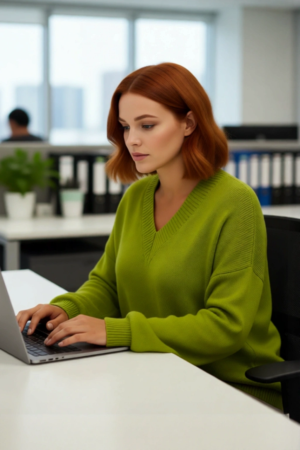 Ürün Özellikleri: Regular kalıp, akrilik materyal, düz desen, V yaka, büzgülü kol, triko kumaş, yeşil renk, baskısız tasarım.